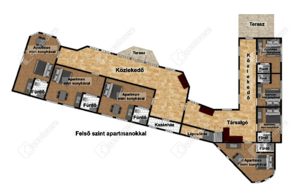 Az emeleten kialakított apartmanok jellemzői:
