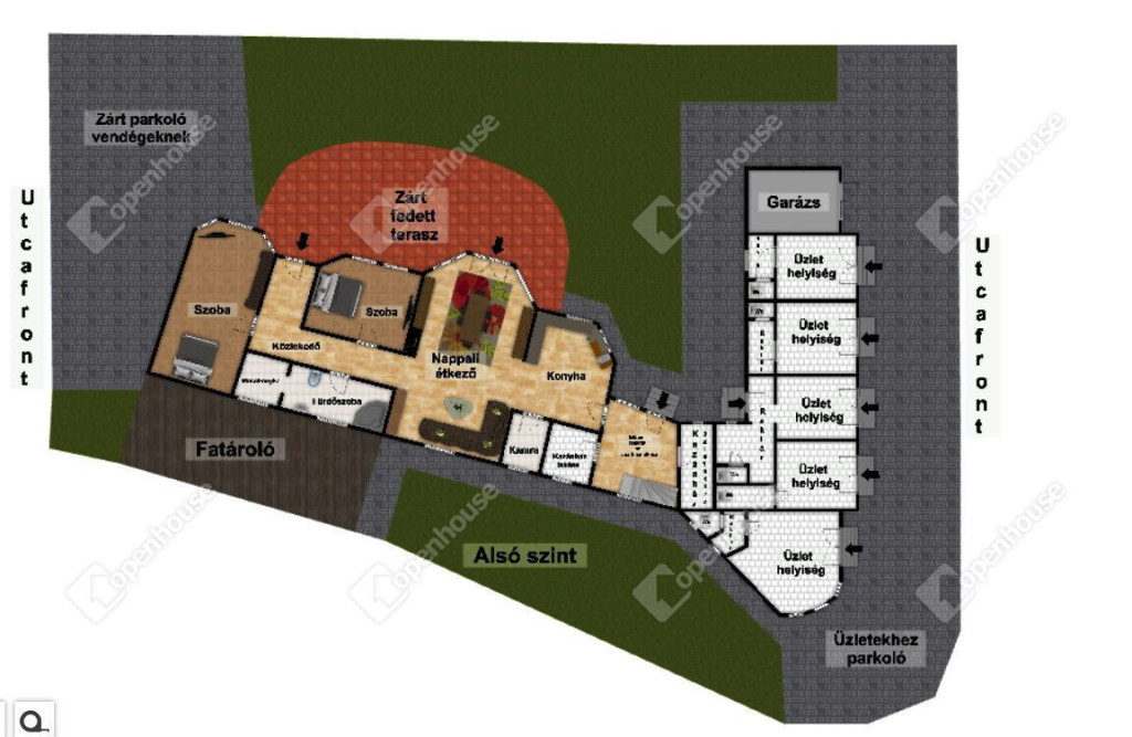 - két utcáról is rendelkezik bejárattal az autóbeállás miatt