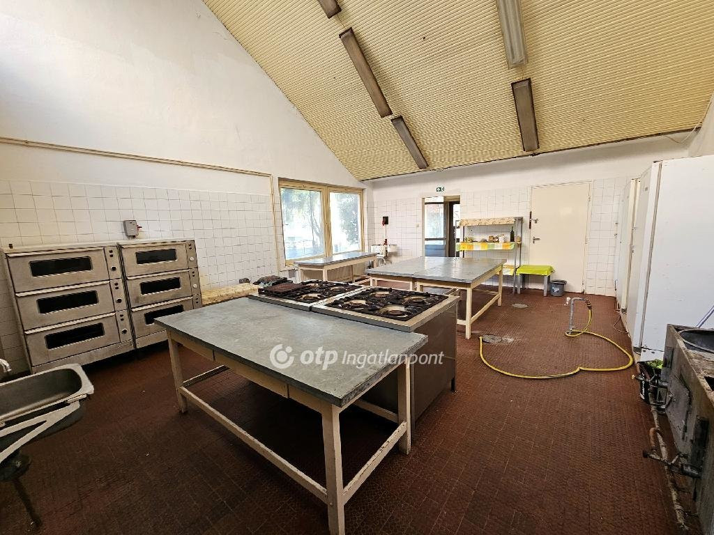 -160 m2-es, osztott, tágas és világos vendégtér - 42 m2-es felszerelt konyha - több mint 240 m2 előkészítő és tároló terület - külön, légkondicionált süteményes helyiség - ipari áram az épületben.