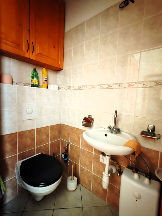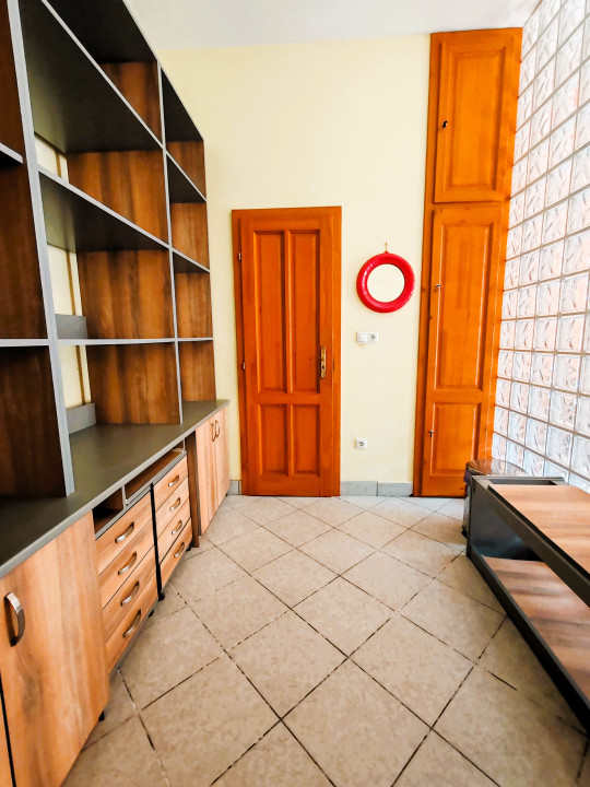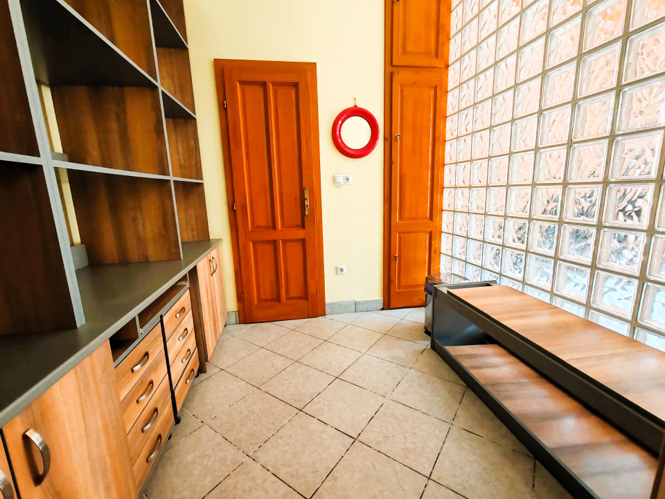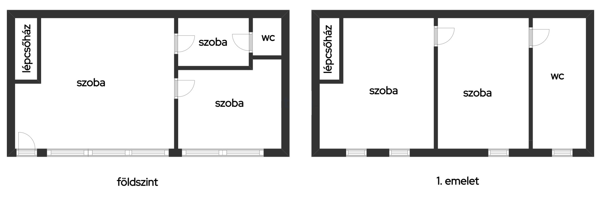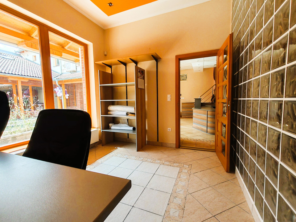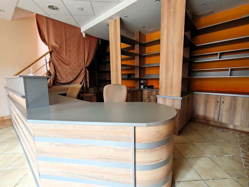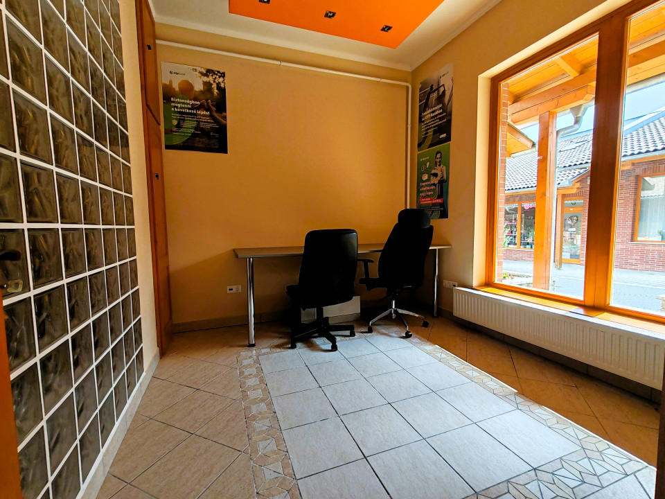 A kétszintes elrendezés praktikus: a földszinten egy tágas eladótér, két szoba és szociális helyiség található, míg az emeleten további két szoba és egy szociális helyiség áll rendelkezésre.