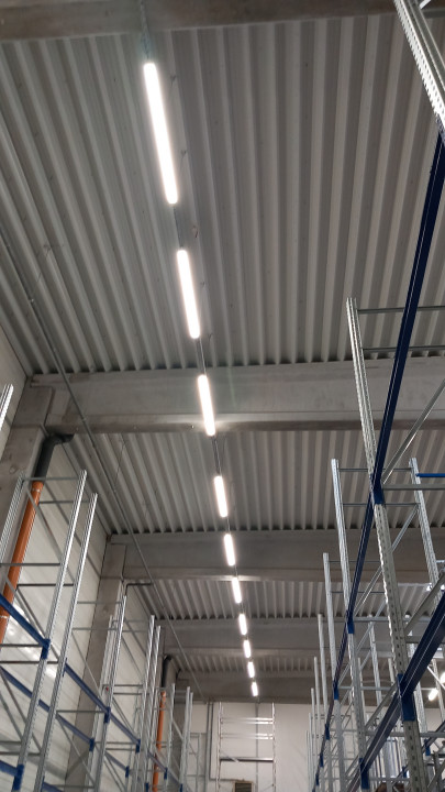 Kiépített hálózatok. Polcrendszer van. Minden kiszolgálható targoncával.