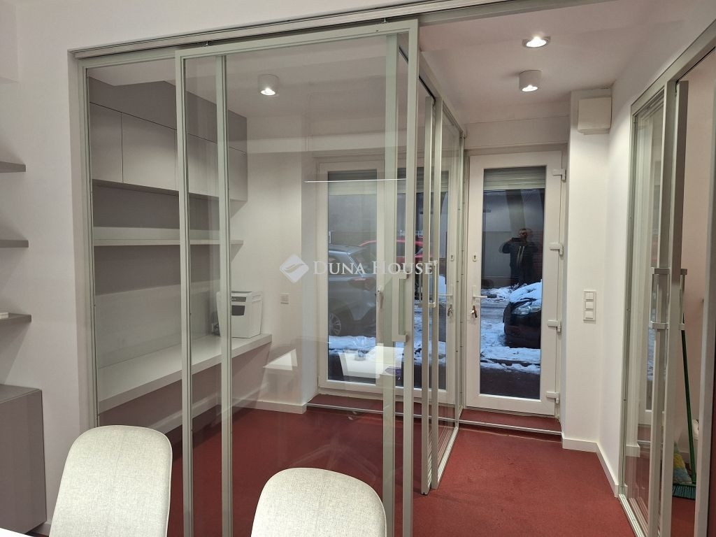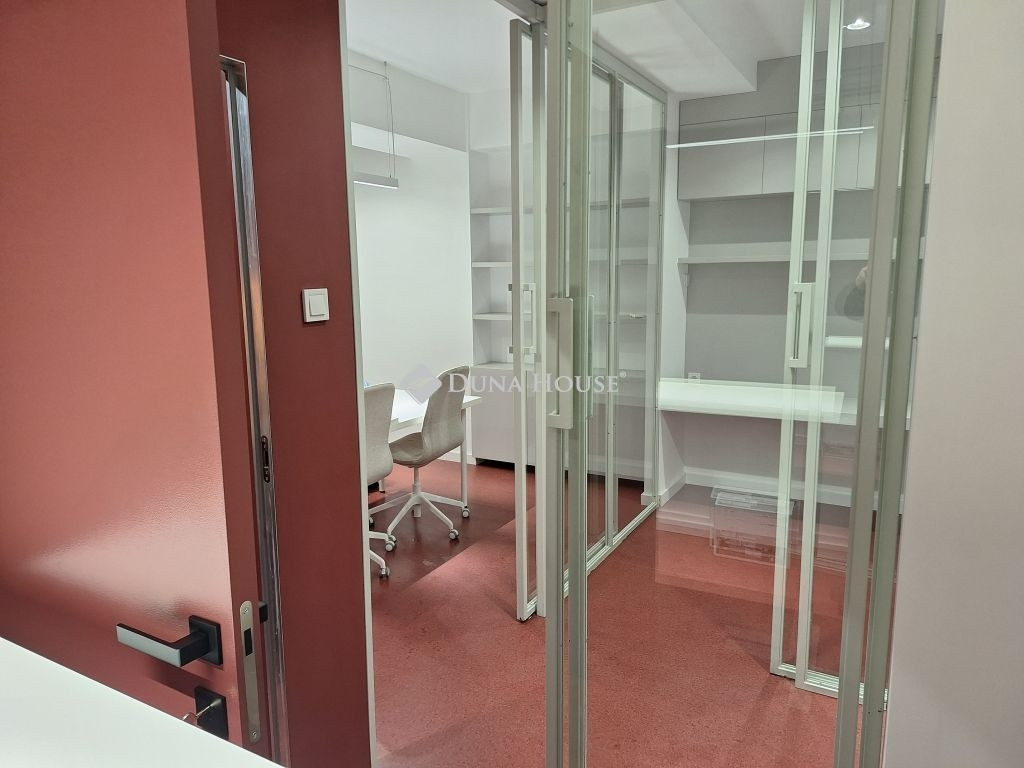 Az ingatlan két helyrajzi számon szerepel (9nm és 18 nm, műhely besorolású) és két elektromos redőnnyel is felszerelt bejárattal megközelíthető az utcafrontról. A jelenlegi kialakítás szerint a helyiségbe lépve egy közlekedőn keresztül 3 külön bejáratú tárgyaló érhető el. Ezen kívül egy teakonyha és egy WC található az ingatlan hátsó részében.