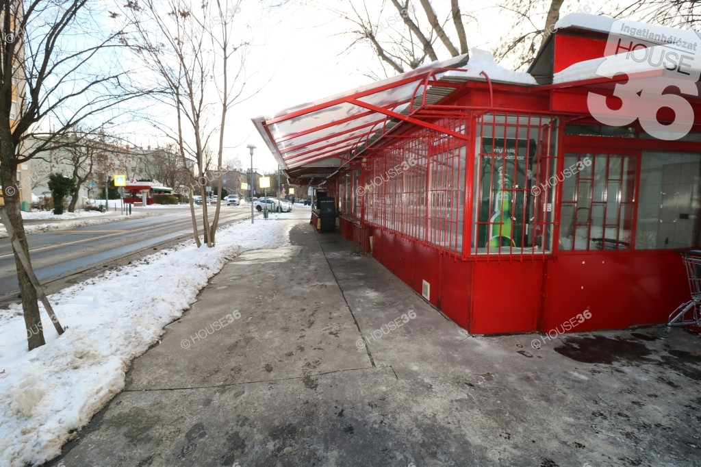 - 19 m2-es, fém szerkezetű üzlethelyiség.
