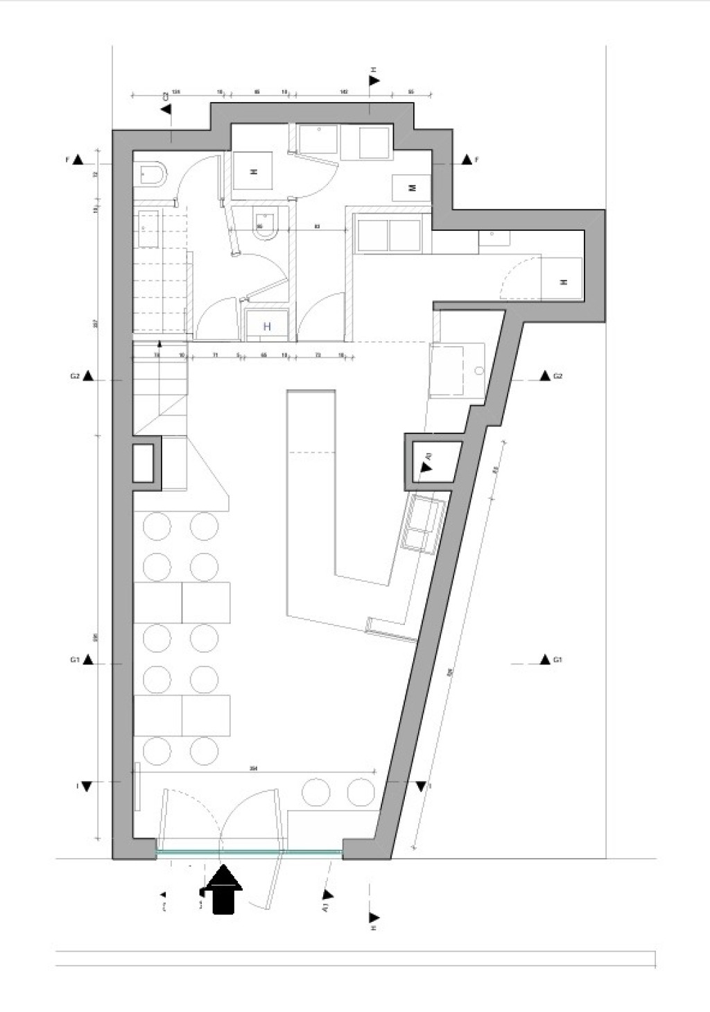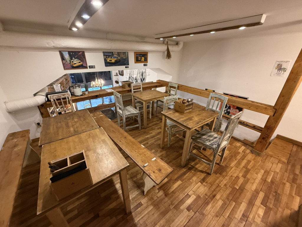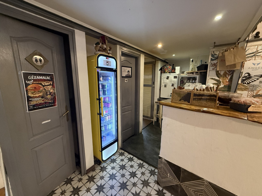 Az elrendezés jól átgondolt: utcafronti vendégtér, konyha, galéria, külön női és férfi mosdók, valamint egy személyzeti öltöző is kialakításra került.