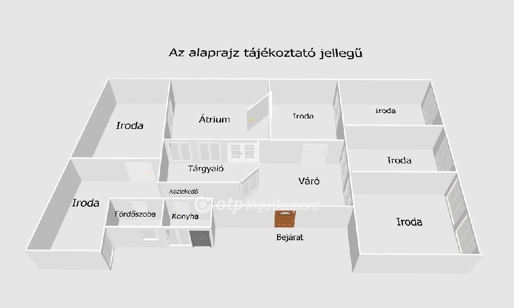 Főbb jellemzők: Alapterület: 300 nm, 6 irodahelyiség, 2 tárgyaló, konyha, fürdőszoba, vendég mosdó, tárolók. Belmagasság: 3,8 méter. Panorámaablakok a teljes utcafronton, kilátással a Szervita térre. Fedett belső átriumos kialakítás. Lift az épületben. Jó műszaki állapot.