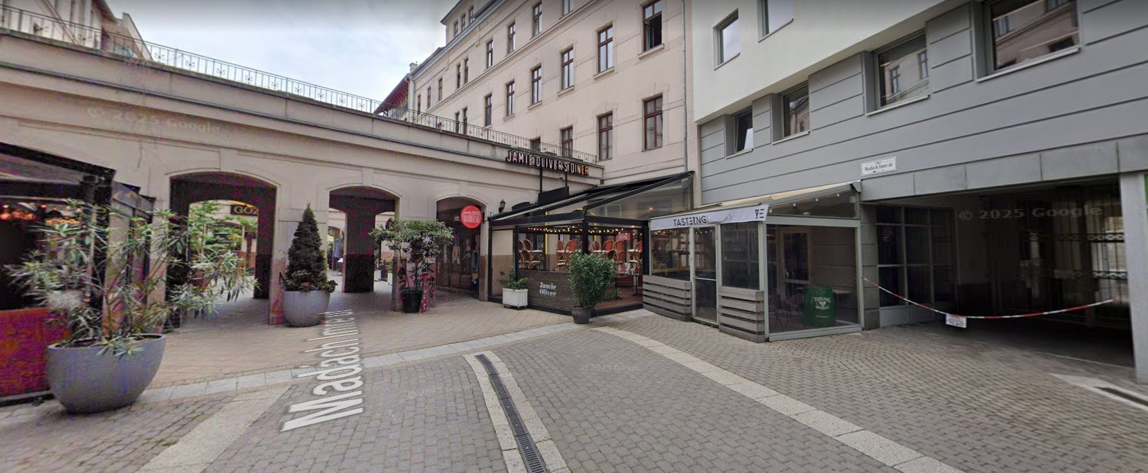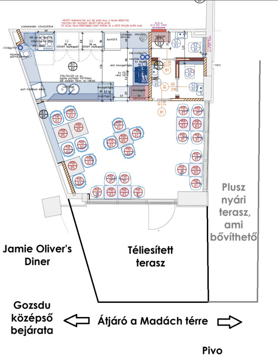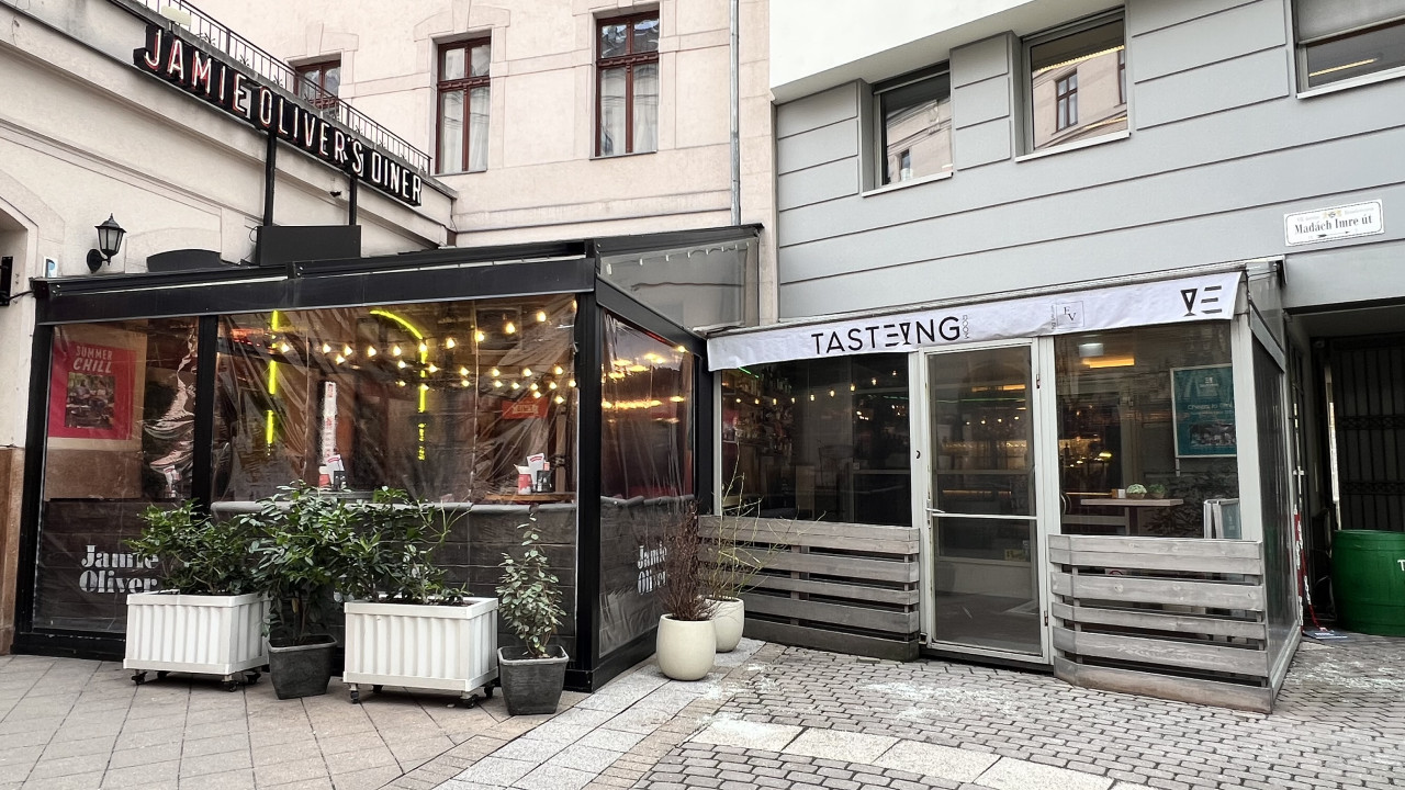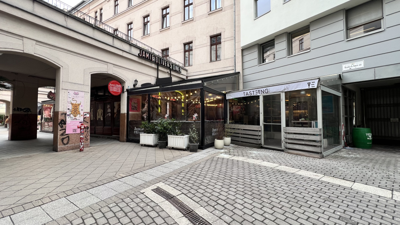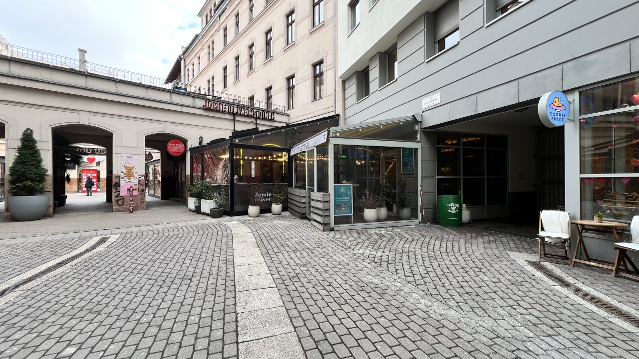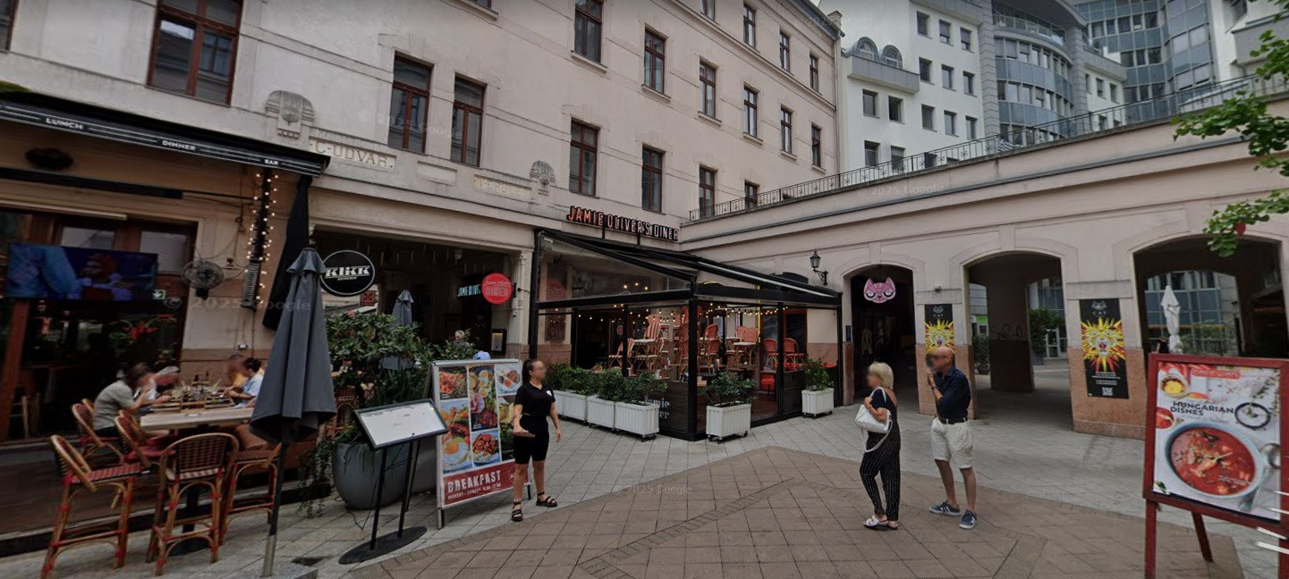 Jamie Oliver’s Diner mellett, a Pivo bárral szemben — garantált egész éves gyalogosforgalommal és nemzetközi vendégkörrel.