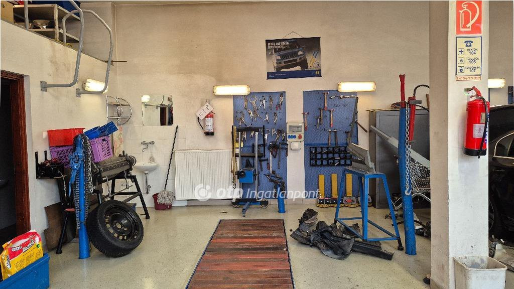 Az utcafrontról a teljesen felszerelt, működő, 4 állásos autószerelő műhelybe 2 szekcionált garázskapun lehet bejutni. Ebből nyílnak a hozzá tartozó kiszolgáló helyiségek: öltöző, zuhanyozó és WC.