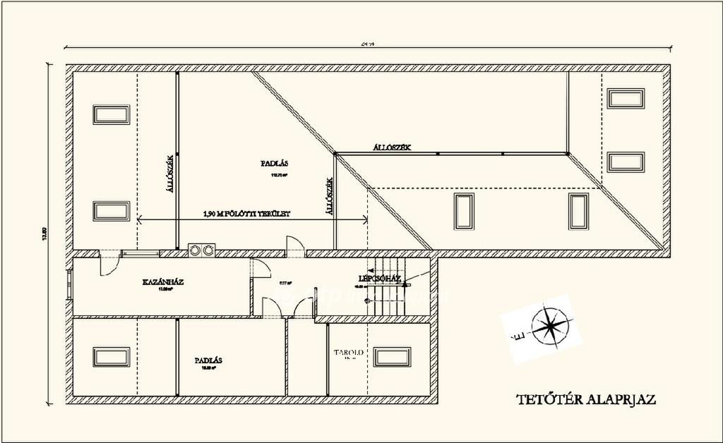 A tetőtérben található a kazán és a melegvíz tartály, egy tároló, és két hatalmas tetőtéri rész, mely igény szerint szobákra, akár önálló lakásokra tagolható.