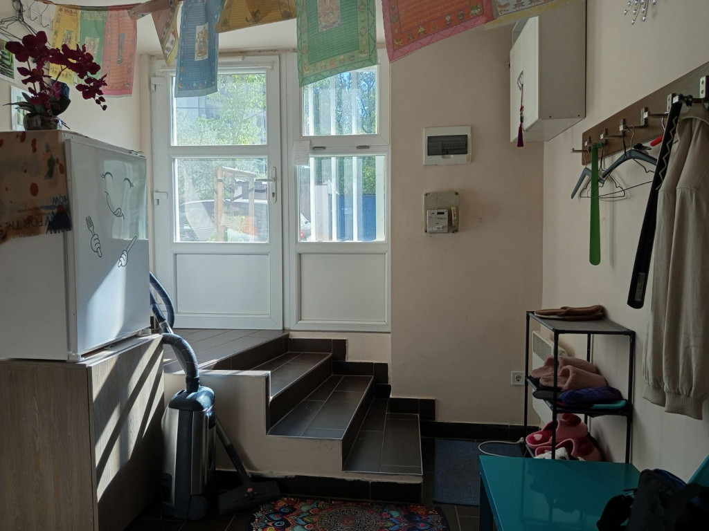 Az ingatlan egy jó állapotú társasház aljában található.