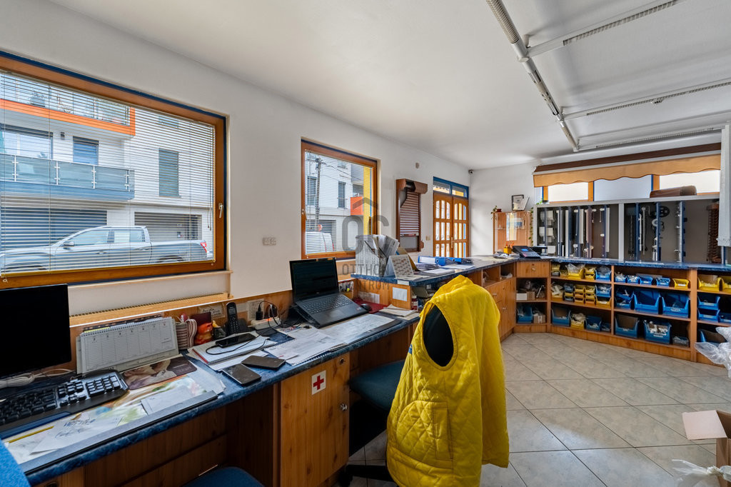 A födszinten egy utcafronti üzlettér, egy kisméretű irodai szoba, egy dolgozói öltöző zuhanyzókkal, illetve két nagy alapterületű műhely/raktár kapott helyet, több bejárattal és kapuval.