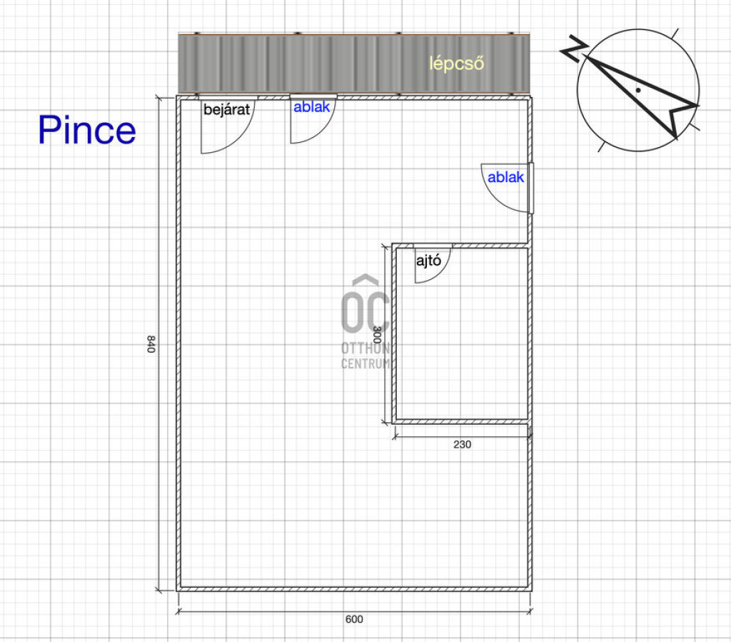 Az épület alatt egy 2,5 m belmagasságú pince biztosít extra raktározási lehetőséget.