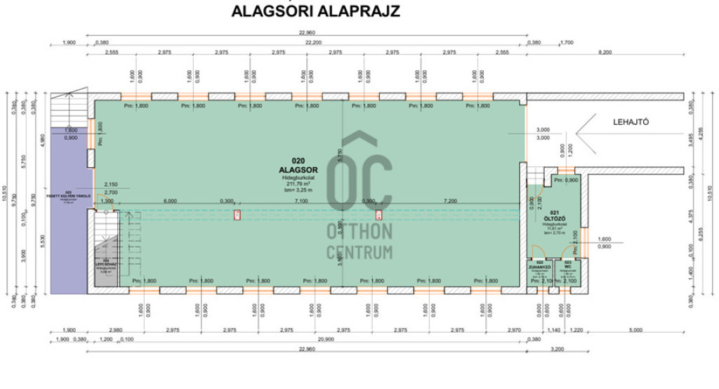 2 tonna/m² födém teherbírás → ipari funkciókra is alkalmas