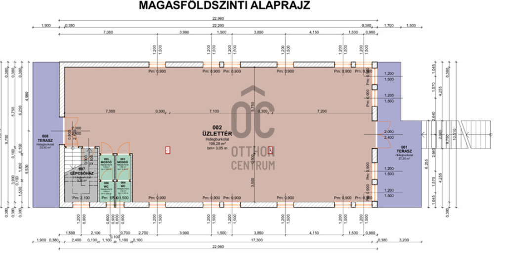 Kereskedelmi terület + irodák → magasabb bérleti díj szint
