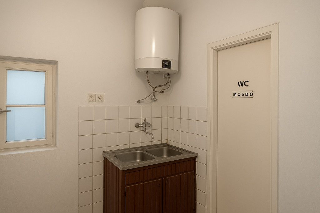 A lakható padlásteres épület alsó szintje 76 nm, igény szerint bővíthető. A melléképület 19 nm, önálló üzletként is működtethető.