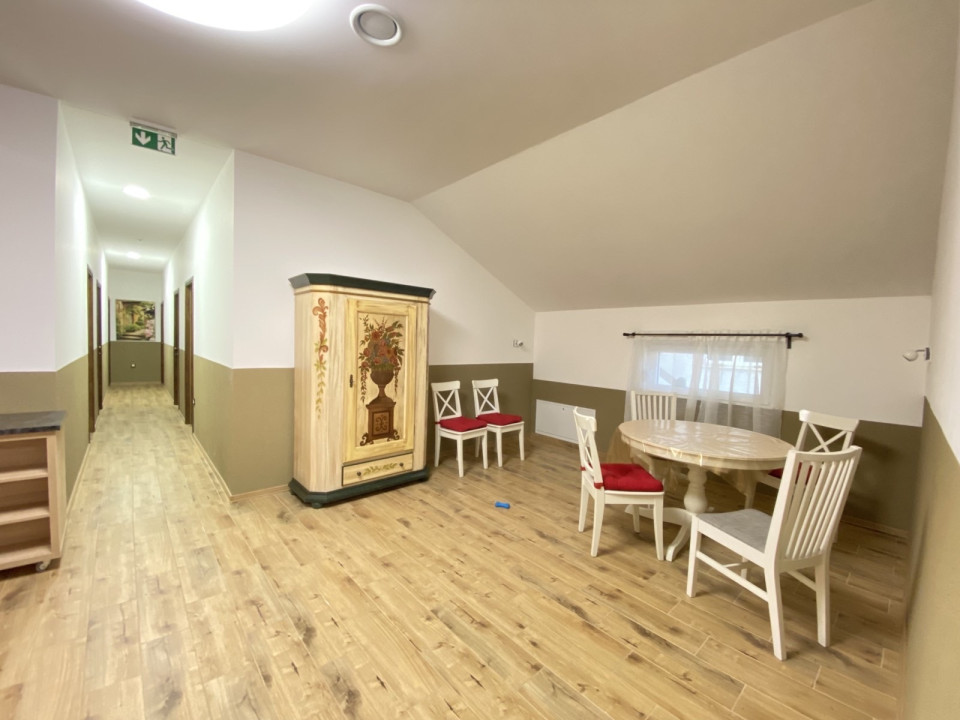 FŐÉPÜLET – 280 m² 11 teljesen felszerelt, bútorozott szoba, mindegyik saját fürdőszobával, TV, internet, klíma, recepció. Teljesen gépesített konyha. Padlófűtés + korszerű szellőztetőrendszer