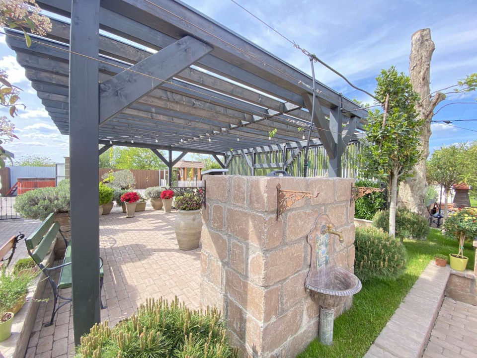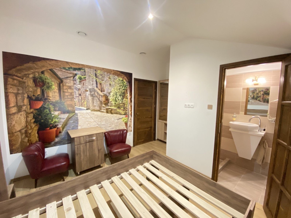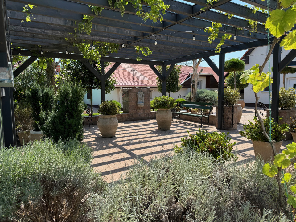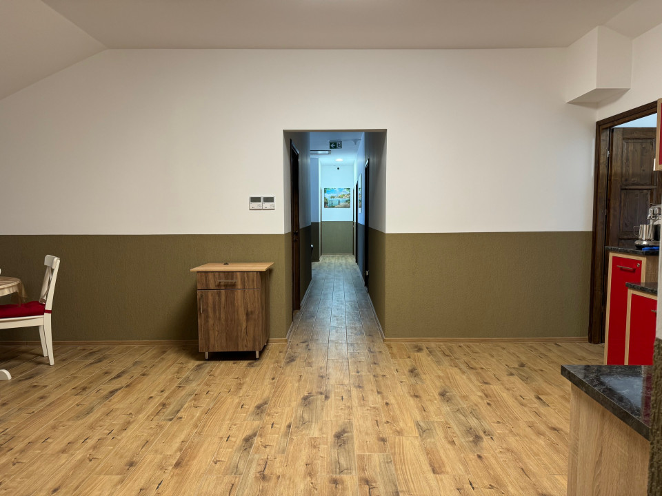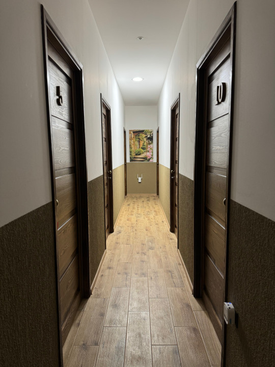 FŐÉPÜLET – 280 m² 11 teljesen felszerelt, bútorozott szoba, mindegyik saját fürdőszobával, TV, internet, klíma, recepció. Teljesen gépesített konyha. Padlófűtés + korszerű szellőztetőrendszer