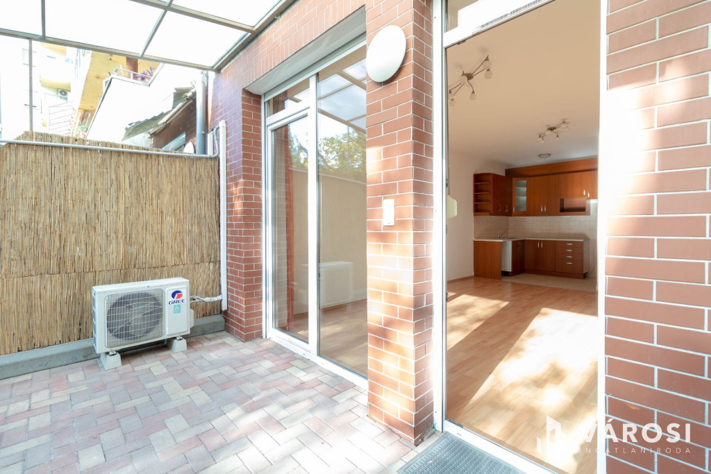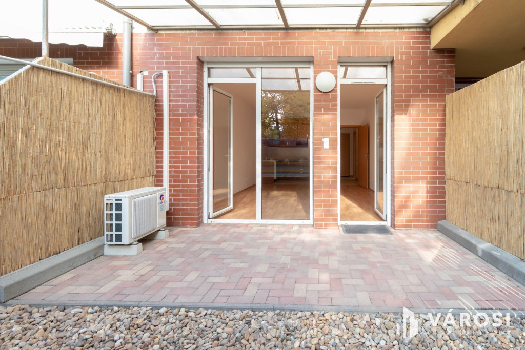 Különlegessége a munkatérből közvetlenül nyíló 9,5 m2-es, kövezett és fedett terasz, valamint az előtte lévő 10 m2-es, műfüves, saját kiskert, mely kivételesen ritka lehetőség.