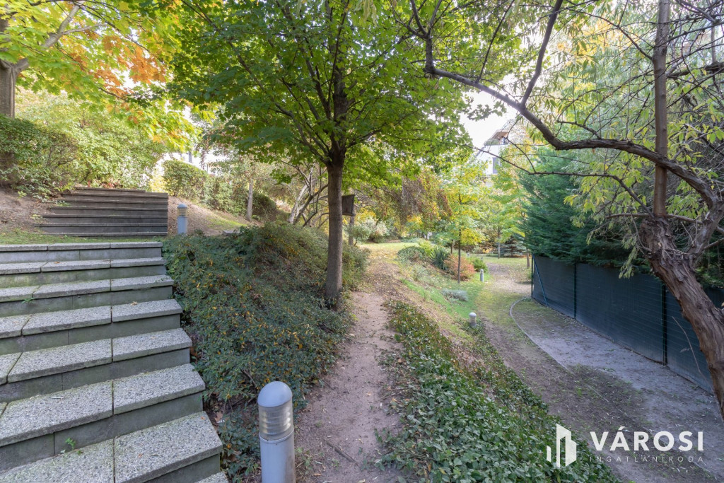 A hangulatos, több szintes, sétányokkal és pihenőkkel rendelkező parkosított belső udvar emeli a színvonalat.
