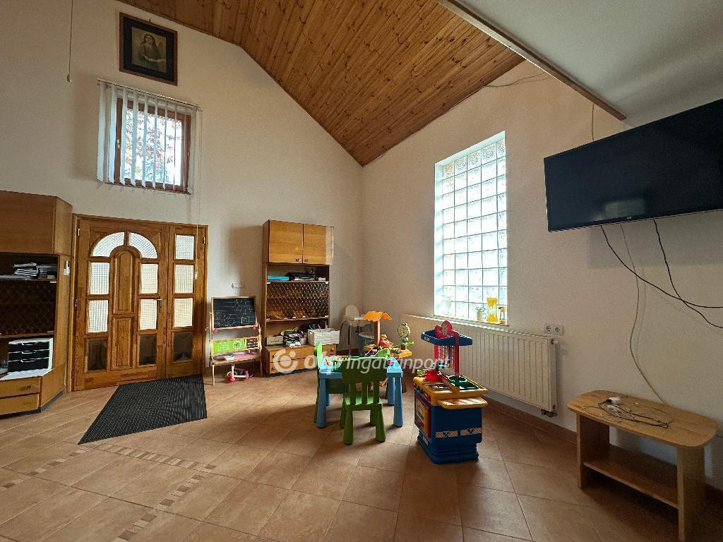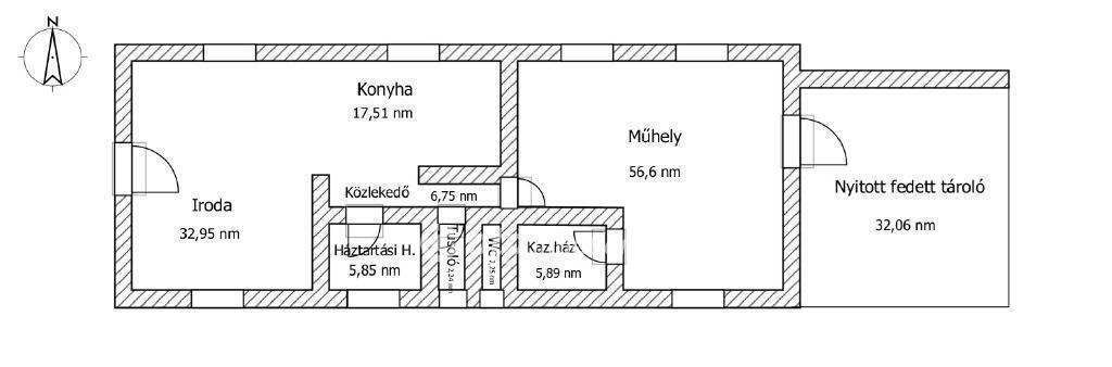 A fő épület 129 nm. Modern, jól karbantartott. Megtalálható benne iroda, konyha, tusoló, WC, háztartási helység, közlekedő, galéria. A fő épületből közvetlenül nyílik egy 56 nm-es műhely, kazánházzal és egy 32 nm-es nyitott, fedett tároló. Az épület tetején napelemes rendszer működik, amely jelentősen csökkenti a rezsiköltségeket. A telken önálló, 110 nm-es, nagy belmagasságú szerelőcsarnok található, ami külön bejárattal rendelkezik. Ideális nagyobb teherautók, buszok, kamionok fogadására és szerelésére.