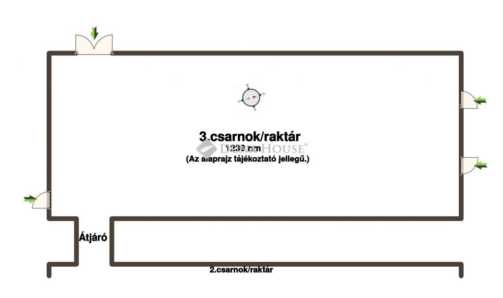 1. Irodarész: berendezett irodákkal, öltözővel, mosdókkal, kiszolgáló helyiségekkel: 750 nm, 3,0-4,5 m belmagassággal,