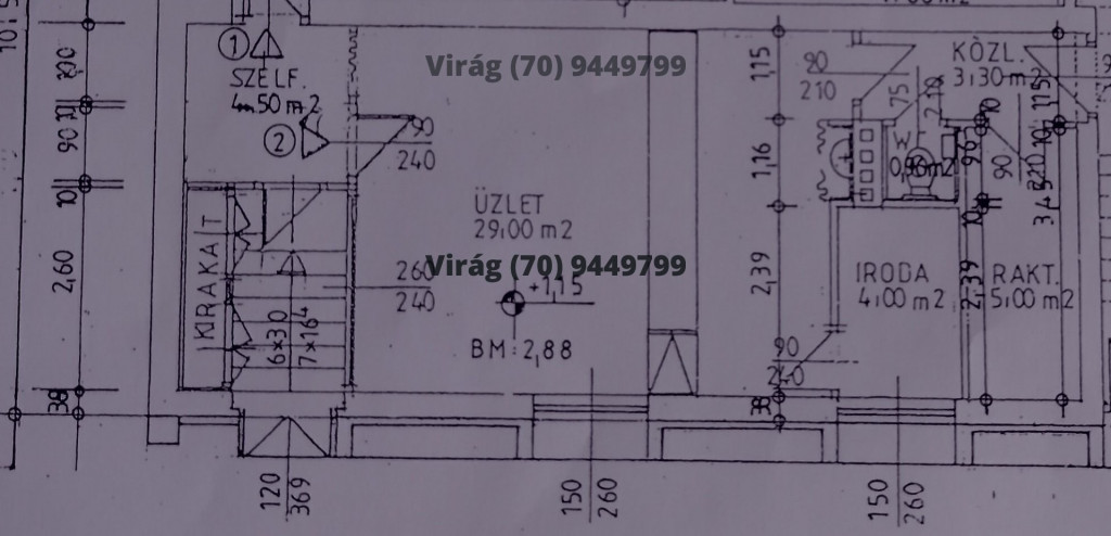 – Iroda, vizes blokk, raktár helyiség: kb. 10 m²