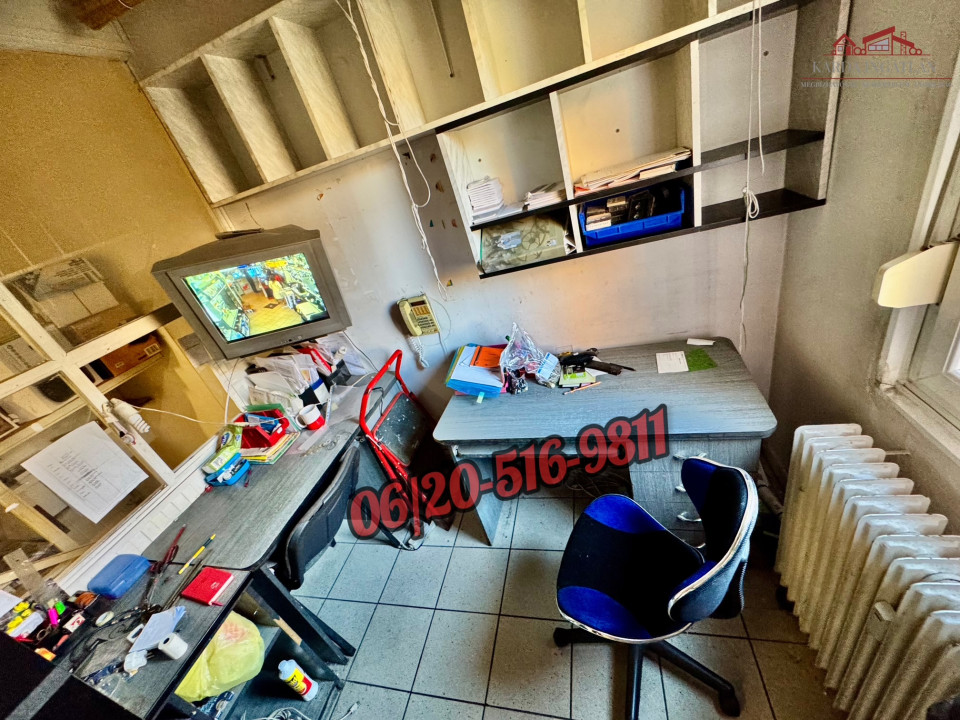 Közvetlenül felette található a 44m2-es lakás, amit belül nyitottak egybe, így az üzletből egy lépcsőn keresztül megközelíthető. A kis lakás jelenleg irodaként, és raktárként funkcionál, de jó műszaki, és átlagos esztétikai állapotban van, bármikor könnyen vissza alakítható lakássá.