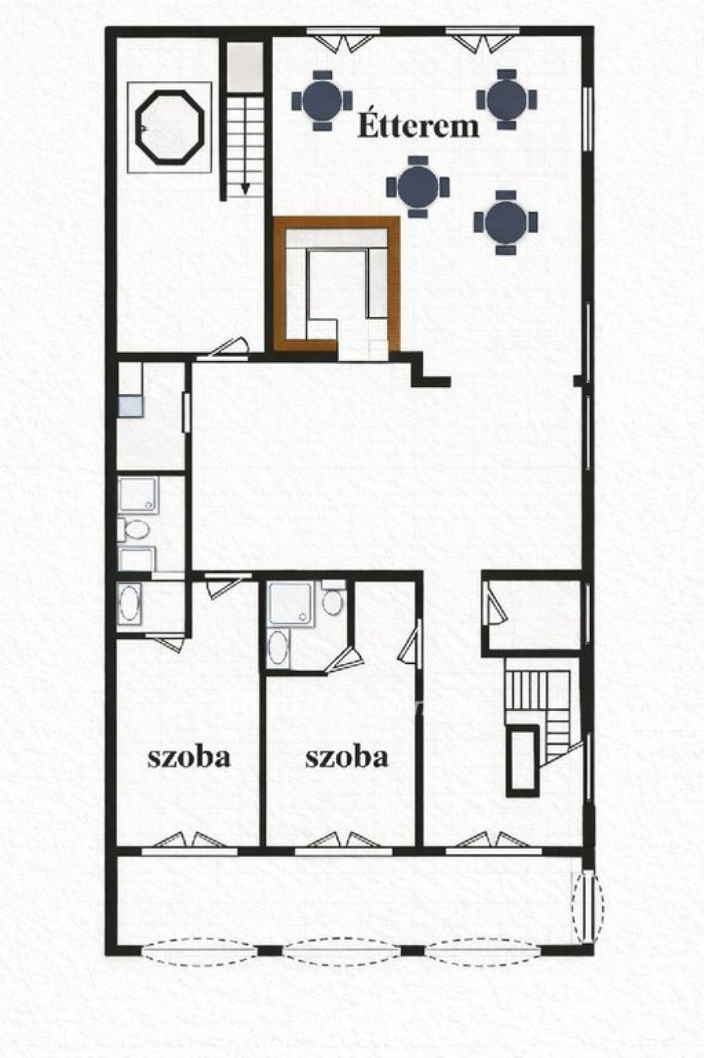 A vendégek kényelmét szolgálja a wellness-részleg, ahol szauna, jakuzzi és hangulatos télikert biztosítja a kikapcsolódást, míg a földszinten kialakított étkező kulturált környezetben teszi lehetővé a reggeliztetést és a vendéglátást. A hotel évek óta ismert és kedvelt szálláshely, stabil visszatérő vendégkörrel és bejáratott működési struktúrával rendelkezik, így az új tulajdonos számára azonnali, bevételt termelő vállalkozást jelent.