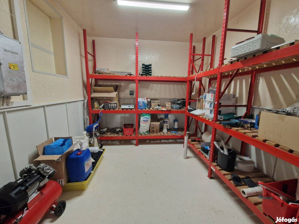 További épületek: 40 m² öltöző és 390 m² különálló palatetős raktár.