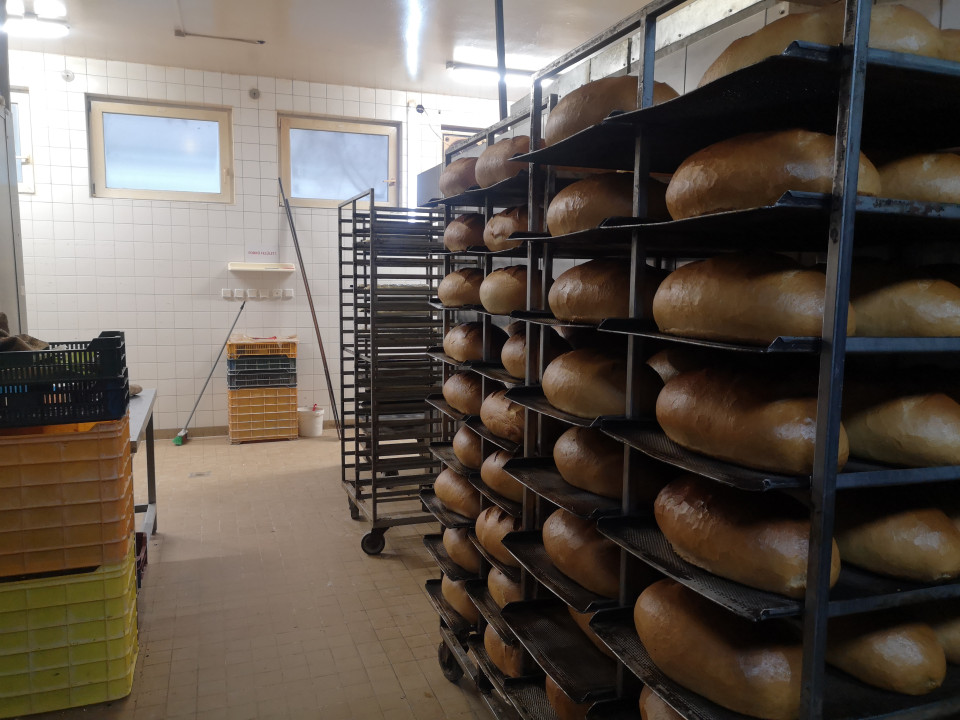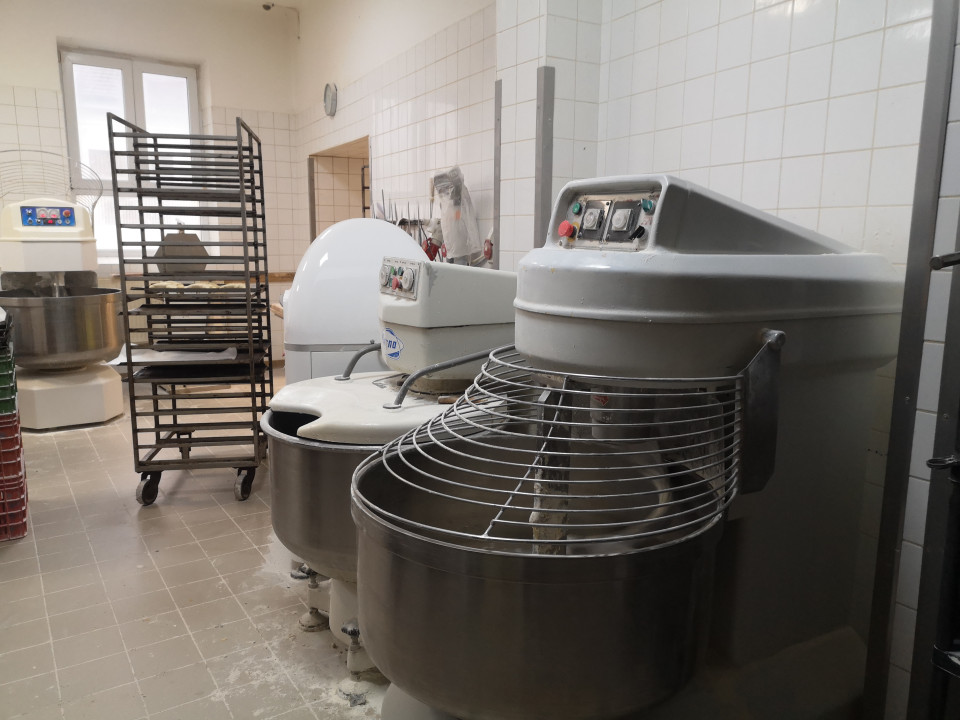 Földszinti részen pékség, raktárak, személyzeti öltözők és mosdók,