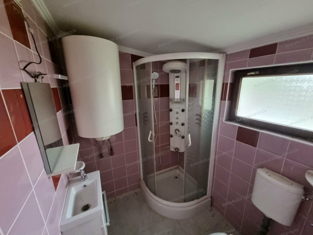 Az ingatlanban két fürdőszoba került kialakításra: az egyik zuhanyzós, teljes értékűen használható, míg a másik kádas fürdőszoba, amely jelenleg félkész állapotban van, így új tulajdonosa saját igényei szerint fejezheti be.