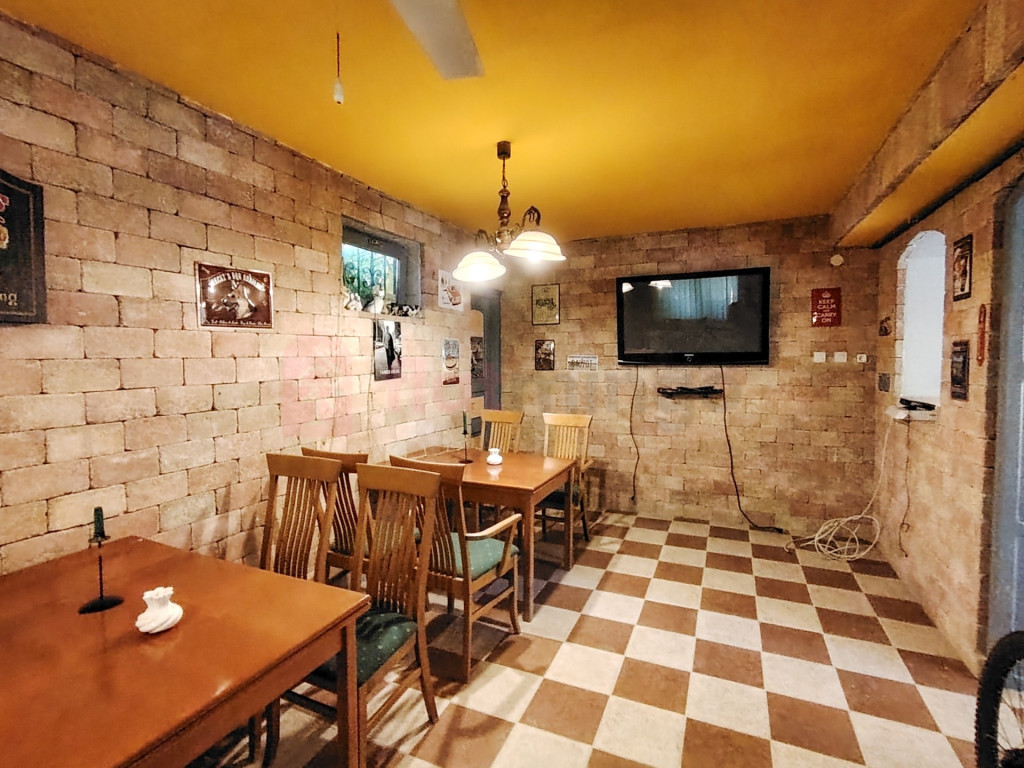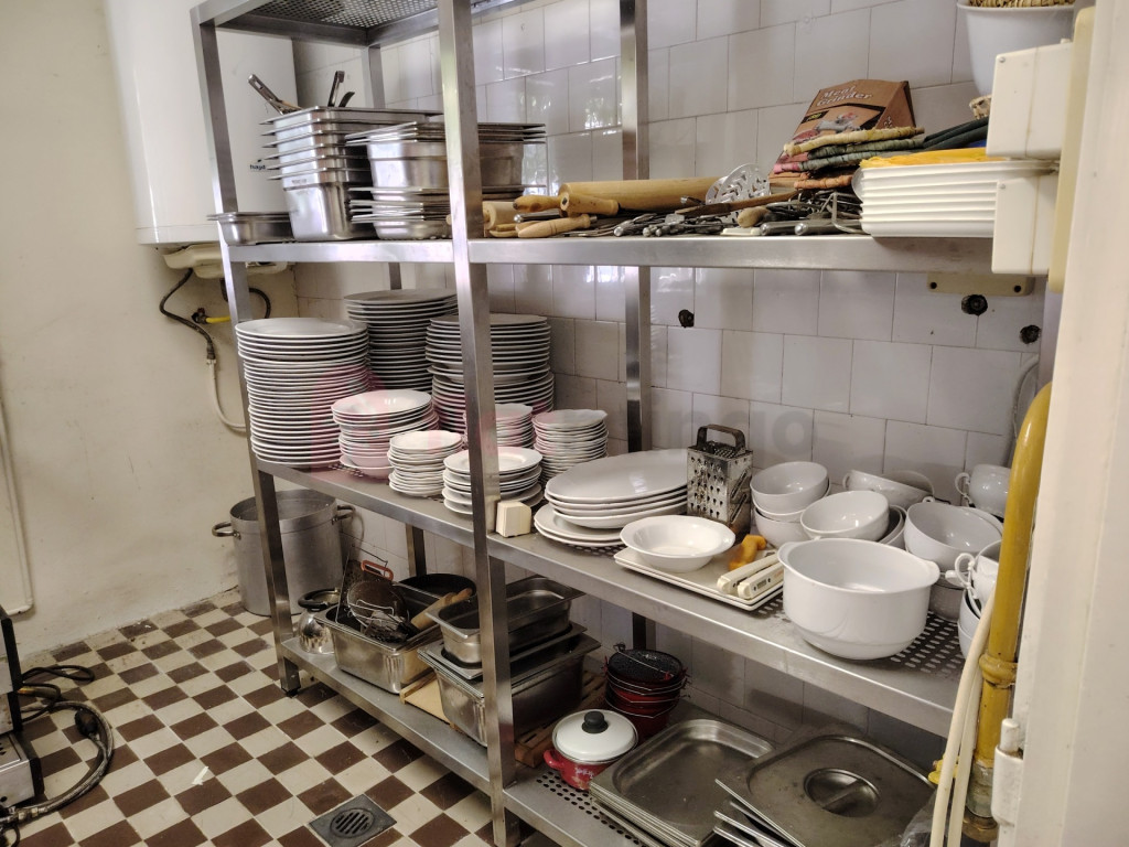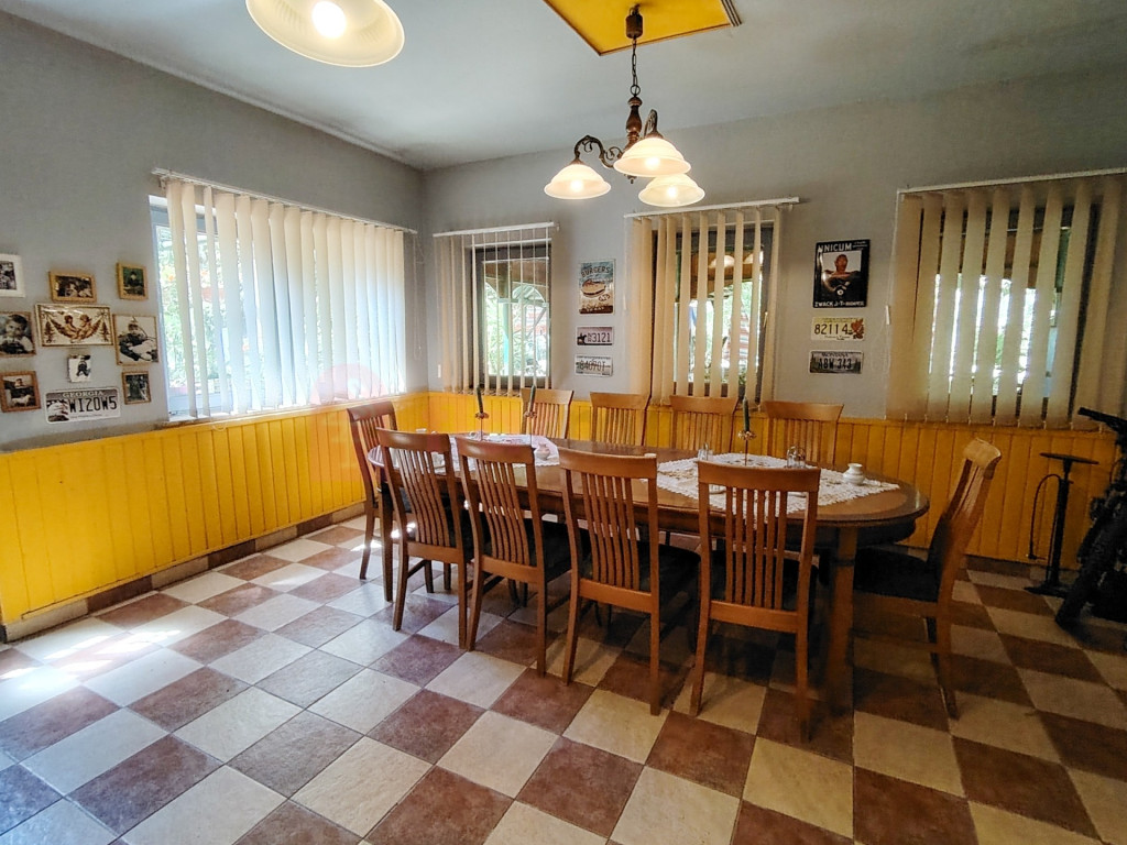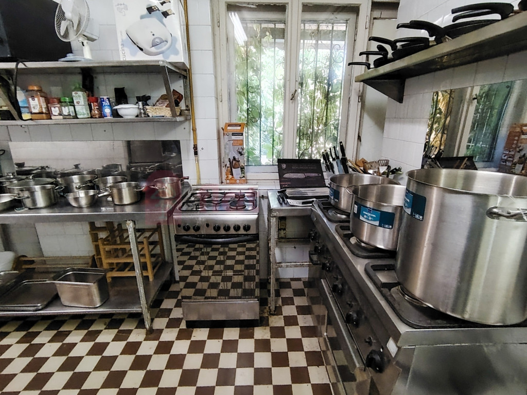 Az épület másik fele a belső térben 30 fő befogadású étteremnek ad helyet, ami kiegészül a külső teraszon és kerthelyiségben további 30-40 férőhellyel. A konyha felszerelése minden korszerű és elvárható igényt, HACCP előírást kielégít, rozsdamentes főzőedényekkel, az éttermi felszolgálás minden asztali és tálaló kellékével. Rendelkezik még egy járható méretű készétel hűtő kamrával, valamint a rendezvényekhez elengedhetetlen melegentartó és tálaló pulttal.