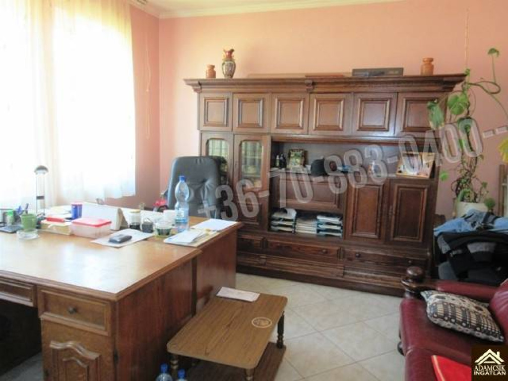 Továbbá a területen megtalálható még két beállós garázs, 185 nm-es családi ház, melyben 3 szoba, konyha- étkező-nappali, fürdőszoba, mellékhelyiség, irodahelyiség található, 50 nm-es pince, és 200 nm-es tároló is. A ház 2000-ben épült 38’s téglából, szigeteléssel, tetejét Bramac cserép fedi, fűtéséről cirkó gondoskodik radiátorokon, és padlófűtésen keresztül.
