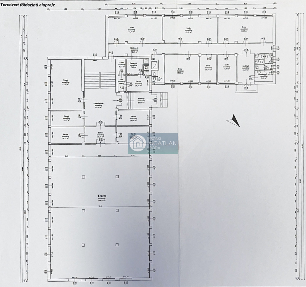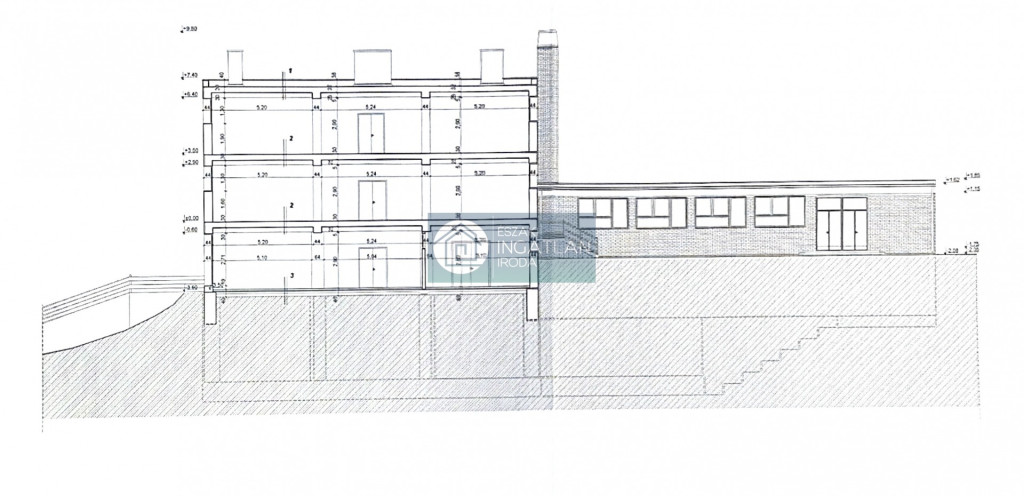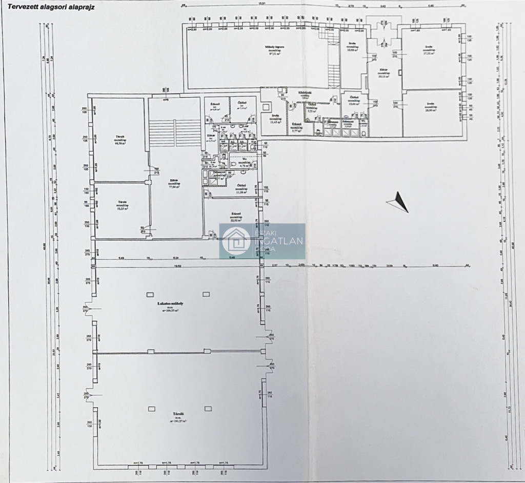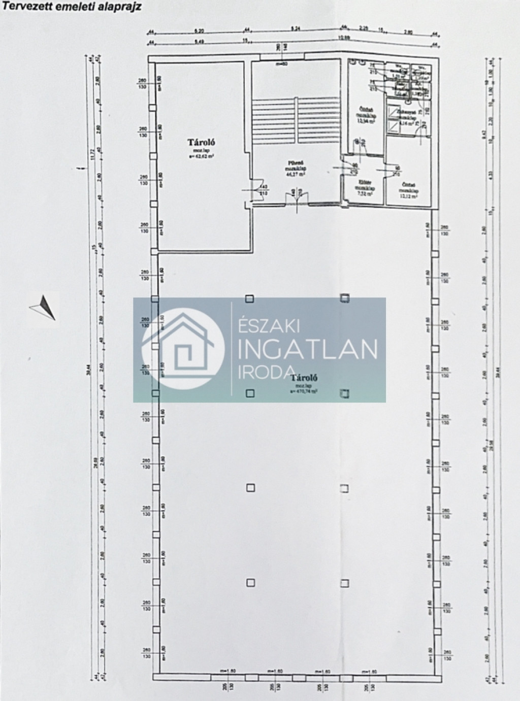 • 3 szintes főépület, szintenként ~600 m²-es csarnokokkal