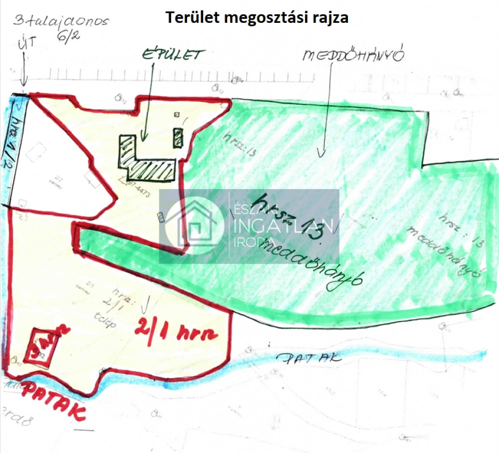 • Az ingatlan egyik oldala a Tardona-patakkal határos