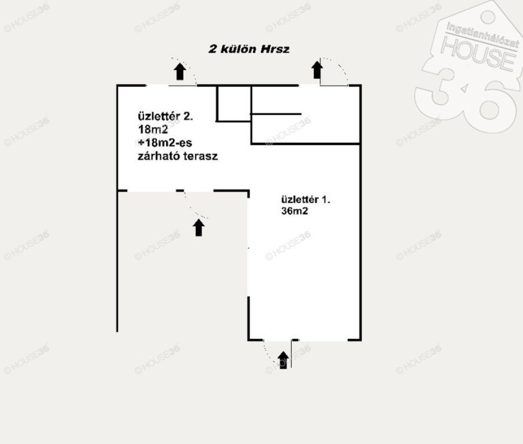 54 m² alapterület (36 m² első üzlettér + 18 m² hátsó rész)