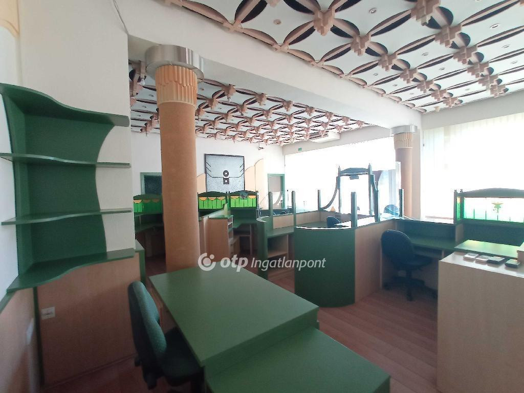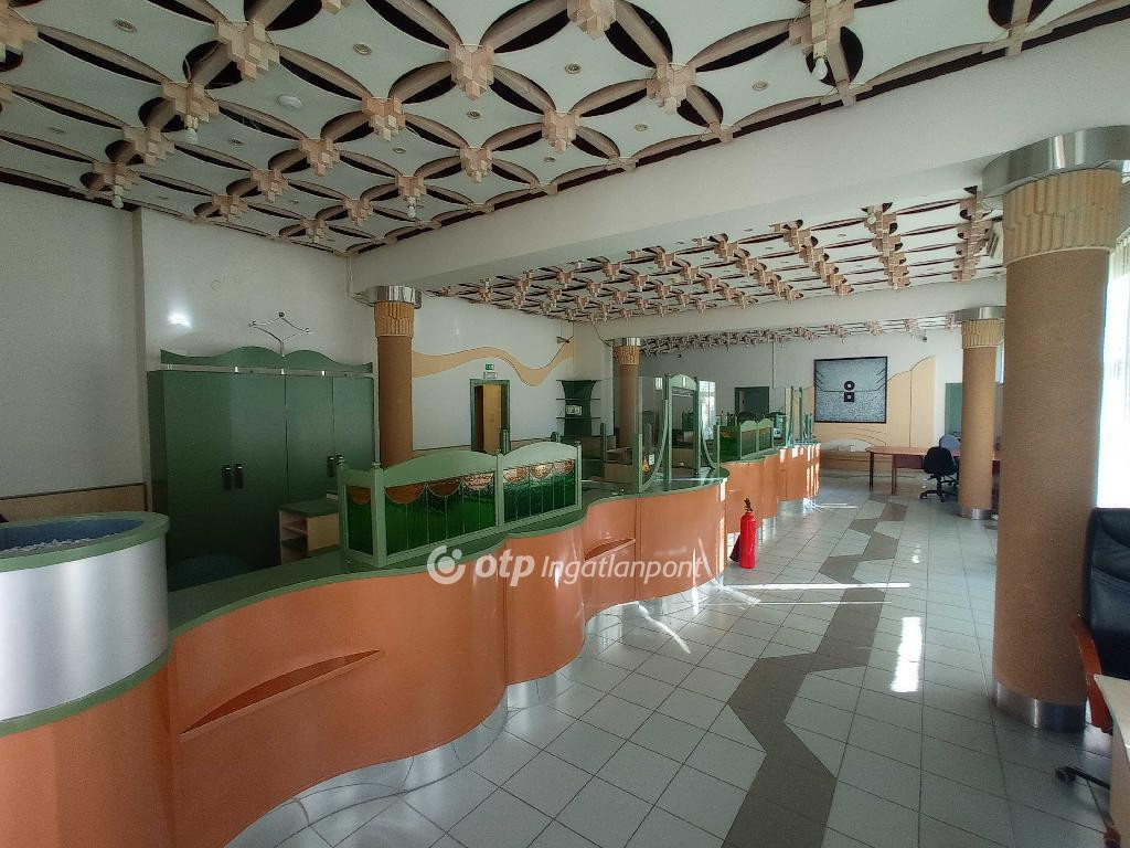 Kecskemét belvárosi társasházban, 277 m2-es, korábban bankfiókként üzemelt iroda eladó. A tégleépítésű ház földszintjén, közvetlenűl utcafrontról megközelíthető. A külső nyílászárók fából készültek, kirakatszerű kialakítása alapján reklámfeliratokat, hírdetéseket helyezhetnek el. Távfűtéssel rendelkezik, klimatizált, több egyedi klíma biztosítja a megfelelő hőmérsékletet a kiszolgáló térben. 3 x 50 A elekktromos teljesítménye lehetővé tesz vendéglátó, kereskedelmi, magánegészségügyi tevékenységet is. Korábbi teljes berendezése az ár részét képezi, szociális blokkjának kialaktása, teakonyha, fürdő, nagyobb létszámú üzleti vállalkozásnak is megfelel. A társasház előtti nagy mennyiségű parkoló miatt megközelítése gépkocsival is ideális.