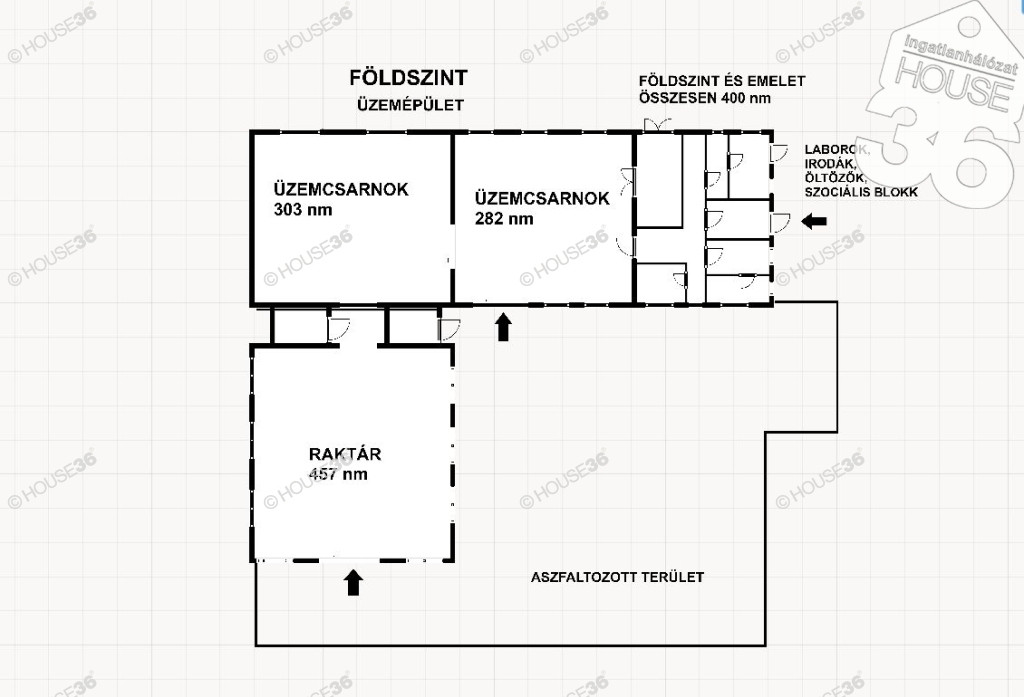 Raktár-üzem: 585 m², a terület átalakítása megkezdődött.