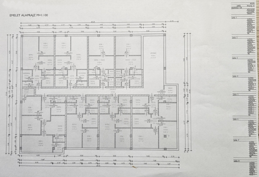 Lakócélra is kialakítható, 8 db lakás elhelyezhető. Egyszerűsített műszakirajz megtalálható a képek között.