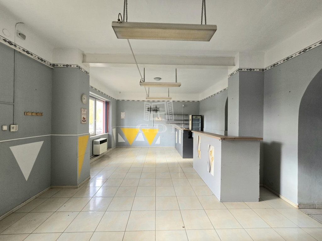 Az utcafrontról megközelíthető, tágas fő üzlettér fogad minket, amelyhez több mosdóhelyiség és egy kisebb konyhai rész kapcsolódik. Az épület hátsó részében további mellékhelyiségek, tárolók, valamint egy külön kialakított, kisebb lakrész található – ezt a tulajdonosok saját használatra alakította ki, hogy szükség esetén ott tölthessék az éjszakát. A lakrész alkalmas vendégszobának, irodának vagy személyzeti pihenőnek is.