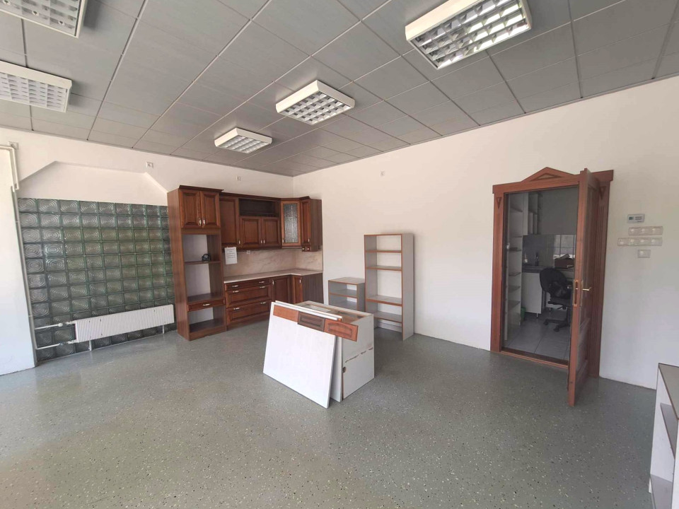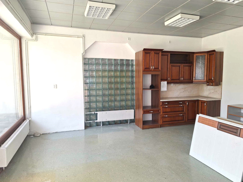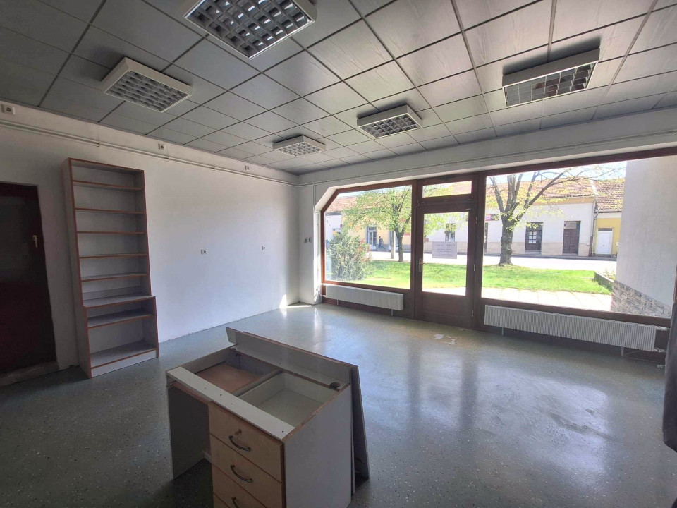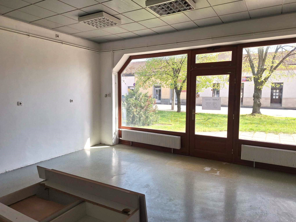 A város főutcáján, központi helyen széles utcafronti üvegportállal rendelkező üzlethelyiség szociális blokkal..