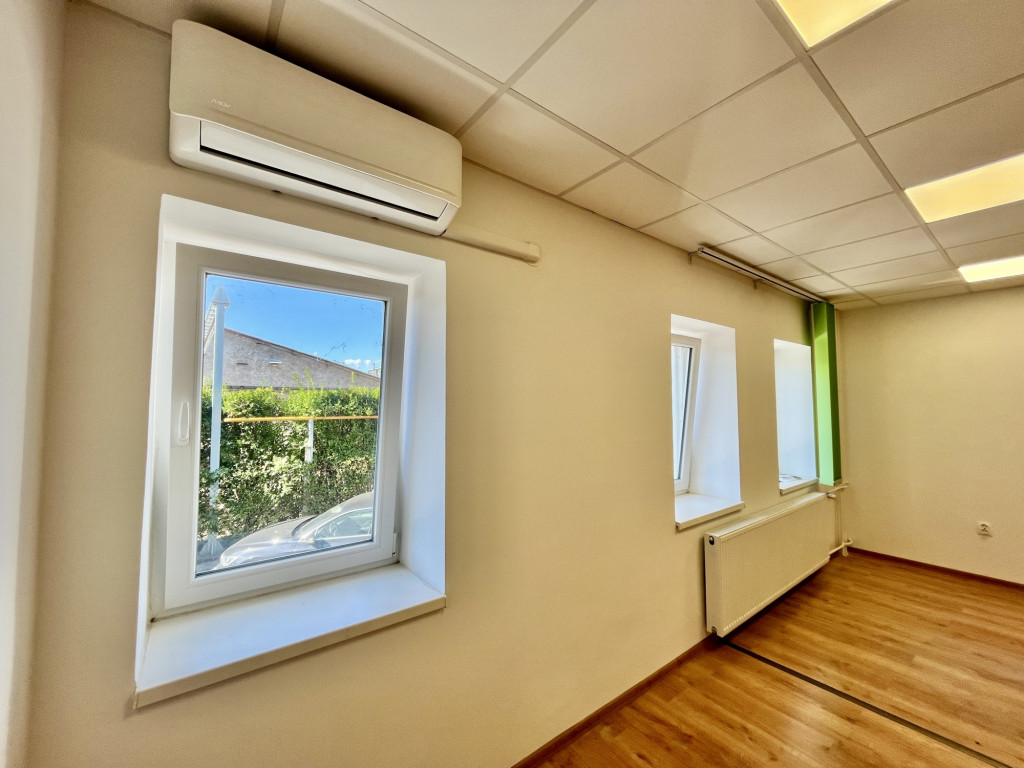 A felújított irodahelyiségek a földszinten helyezkednek el. Maga az épület liftes – szükség esetén jól jöhet. A helyiségek világosak, ablakok a belső udvarra, parkolóra néznek. A mellékhelyiségek a folyosóról közelíthetők meg.