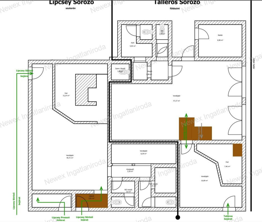 - Az utóbbi évtizedekben vendéglátási tevékenység folytatódott a ház minden részében és az udvaron található 115 m2-es gazdasági épületben egyaránt, ahogy a képek ezt mutatják.