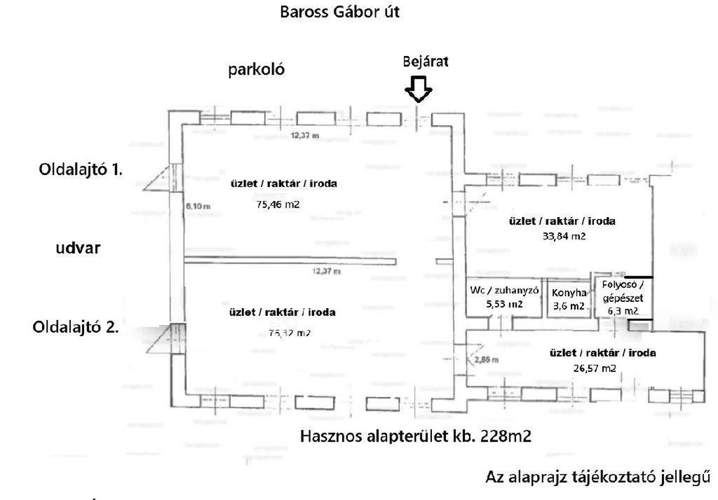 Belső tér: 3,5 méteres belmagasság, tágas, jól alakítható terek.
