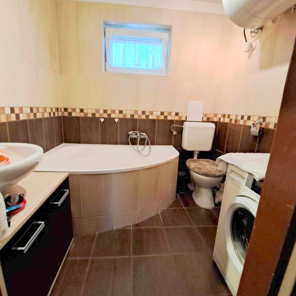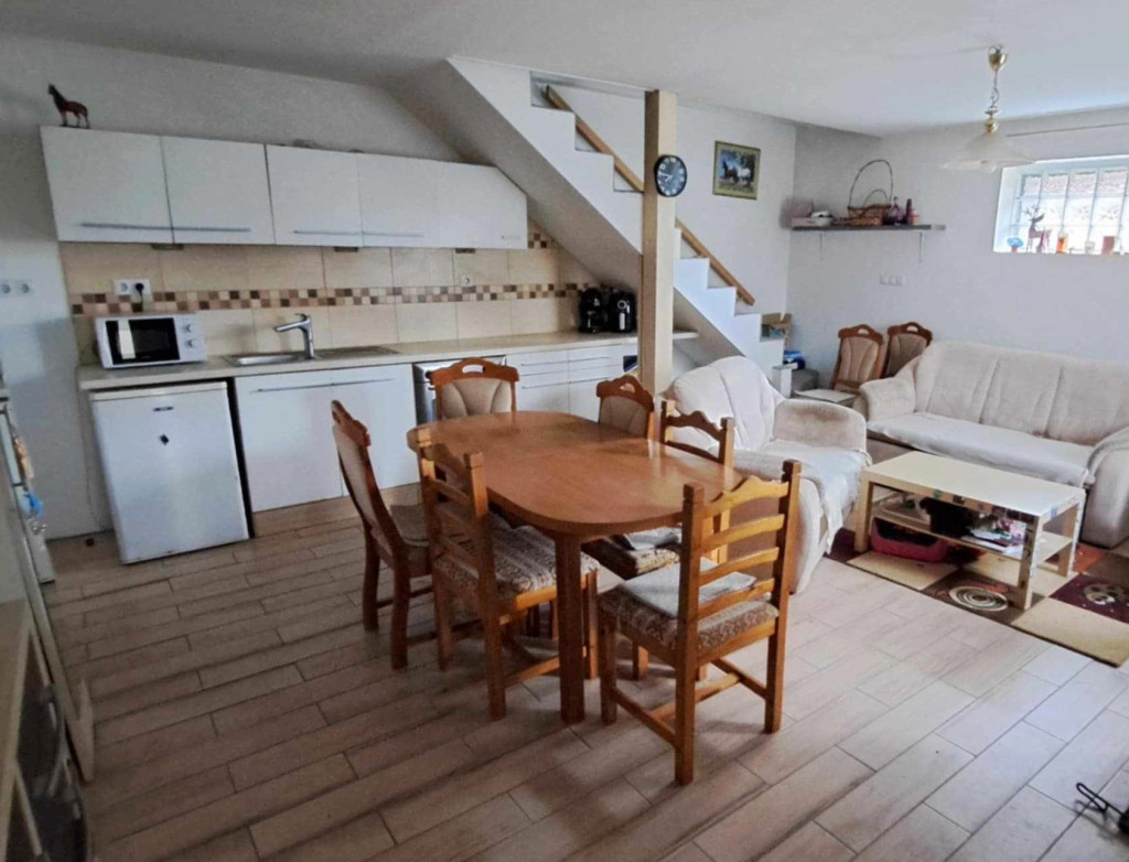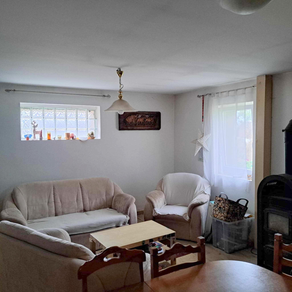 Az 1950-ben épült főépület szívében egy 1990-ben felújított, kétszintes lakóház került kialakításra. A földszinten egy tágas nappali-konyha és egy sarokkádas fürdőszoba található. Az emeleten két kényelmes hálószoba várja az új lakókat. A fűtésről villanyradiátorok és egy hangulatos fatüzelésű kandalló gondoskodik. A nyári melegben klímaberendezés biztosítja a kellemes hőmérsékletet.