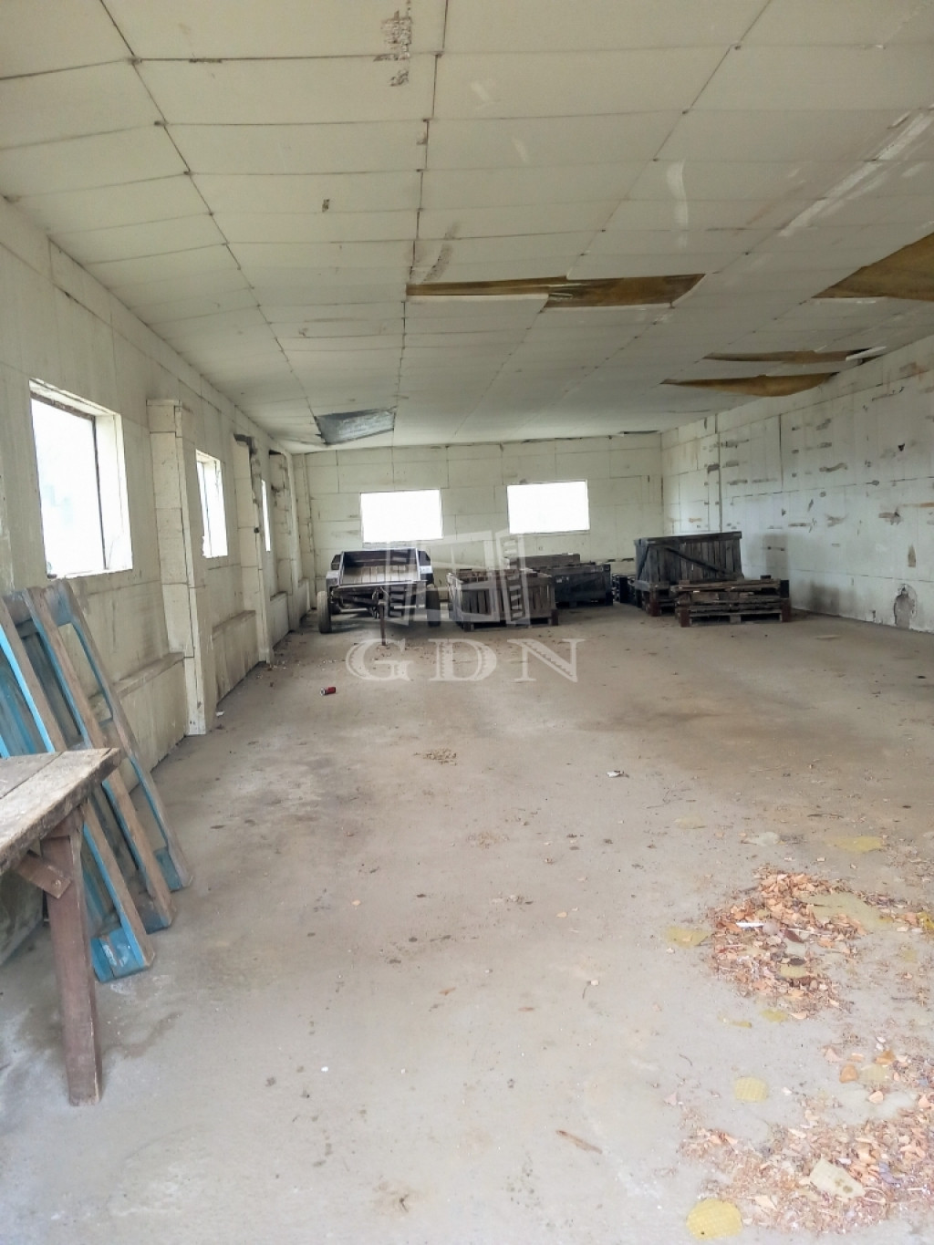- 1 db régi építésű vasbeton tartóoszlopokon fém szerkezetű, hullámpala tetővel, téglával falazva, dupla vasajtókkal, melyeken nagy méretű munkagépek is könnyedén be tudnak állni ( 17,60 x 12,10 m)