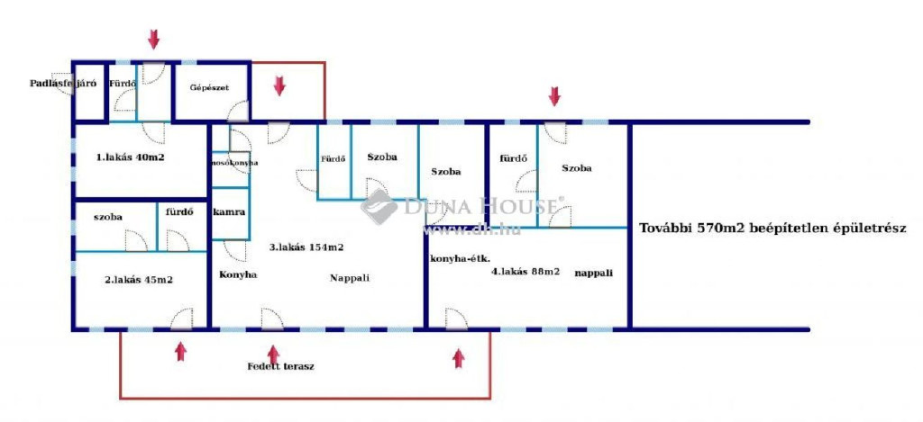 Kivételes lehetőség Magyarország nyugati felében, az osztrák határ mentén, a Pinka völgyében. Kiváló lehetőség akár magán, akár üzleti célra is.Az ingatlan komplexum Pornóapátiban található. Ez a Vas megyei település közvetlenül kapcsolódik az azonos kultúrkörbe tartozó szomszédos osztrák térséghez, ezen belül is Bildein, illetve Deutsch Schützen településekhez.Pornóapáti település a Vas-hegy sajátos klímájának, a Pinka völgye és a kiterjedt erdőségek üdülésre, kirándulásra kiválóan alkalmas egyedülálló mikroklímájának köszönhetően mindig Szombathely és a megye egyik legjelentősebb kiránduló övezetének számított. A környezet adottságai kiváló lehetőséget kínálnak a tájturizmus jellegű idegenforgalomra (regenerációs üdülésre, természetjáró túrákra, kijelölt tanösvények, geológiai gyűjtőutak, gombatúra), az agroturizmusra (szőlészet-borászat, vadászat, horgászat, lovaglás). A bővizű Pinka folyó a jó vízminősége és kedvező földrajzi helyzete miatt fürdésre alkalmas. A környezet adottságai, turisztikai értékei, a vadászati és halászati lehetőségek, a település sajátos nemzetiségi kultúrája és hagyományai, határ menti fekvése a tájturizmus kedvelt célpontja.Különösen jelentős a kerékpáros turizmus. A Fertő tónál Ausztriából érkező és az Adriáig vezető nemzetközi kerékpárút összekötő része a Vashegy kerékpárút amely már évek óta kedvelt úti célja a turistáknak.A 2 hektáros telken 2 ingatlan helyezkedik el, melyek paraméterei a következők:1.) Apartmanház2016-ban került átadásra a 4 db külön bejárattal rendelkező, 52m2-es apartmanlakás, mely összesen 16 személy elszállásolására alkalmas. Padlásterében egy tágas wellness lett kialakítva. A téglából felépített ház szigetelt, a négy egységnek központi automata adagolású pellet kazánja van. A rendszer kiegészítéseként napkollektor rendszer került kiépítésre.2.)A már meglévő épületben, mely egy hatalmas istálló épületből átalakított és luxus minőségben kivitelezett munka eredménye, 4 db különböző méretű LAKÁST alakított ki a tulajdonos. Az épület kívülről fával burkolt, mely igazán vidéki hangulatot kölcsönöz.A lakások méretei:1. sz. lakás: 154 nm + 28,5 nm + 7,16 nm teraszok2. sz lakás: 40 nm3. sz lakás: 45 nm + 14,25 nm terasz4. sz. lakás: 88 nm + 14,68 nm teraszEzen épület része MÉG 596 nm hasznosítható alapterület ÚJABB APARTMANOK/LAKÁSOK létrehozására.Az épület TETŐTERE BEÉPÍTHETŐ, mely bruttó 906 nm.A vételár tartalmazza az egész épület homlokzatának fával való burkolását, de a belső kialakítást nem.A terület földhivatali besorolása KG, mely kereskedelmi, szolgáltató terület.Előírások:- beépítés módja: szabadonálló- telek min. szélessége: 25 m*- telek min. mélysége: 50 m*- min telek terület: 1500 m2*- beépítési %: 40 %- legnagyobb építménymagasság: 6,0 m- legkisebb zöldfelület aránya 20 %Amennyiben felkeltette érdeklődését ez a különleges lehetőség, keressen elérhetőségeimen.