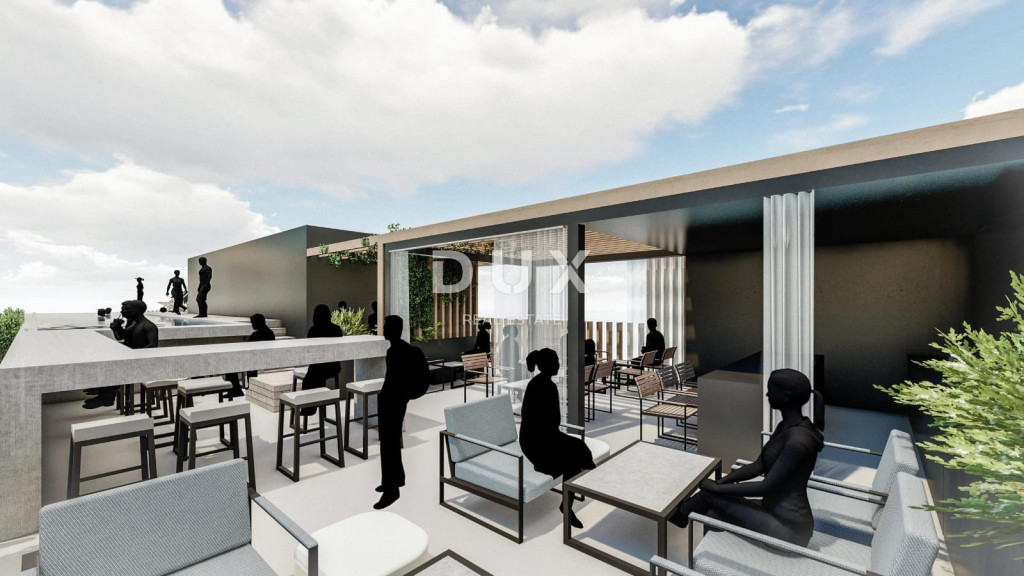 A koncepció egyik kulcsfontosságú pontja egy rendkívül vonzó tetőtér bárral, társalgóval és egy körülbelül 20 méter hosszú medencével, amelyet panorámás élményt nyújtó tetőtéri létesítményként terveztek. Ez a fajta "városi tetőtéri vendéglátás" formátum szinte nem létezik a rijekai piacon, és valódi piaci differenciálást és egyértelmű kereskedelmi potenciált jelent a városlátogatások és a prémium rövid tartózkodású szálláshelyek szegmensében.