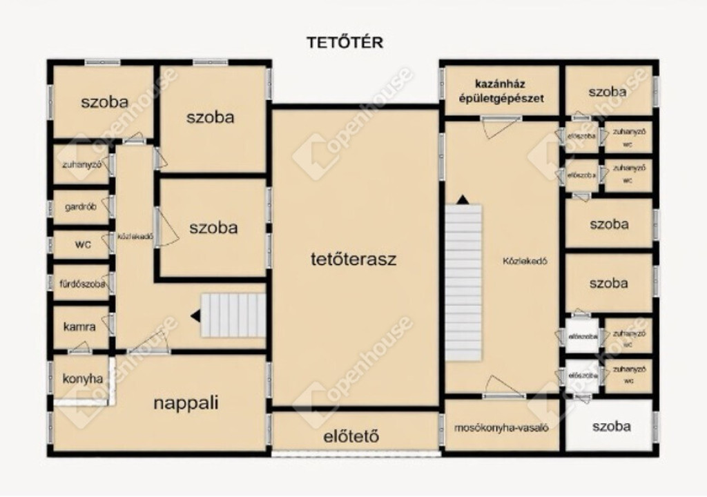 Tetőtérben 4 db, egyenként kb. 40 m²-es szoba