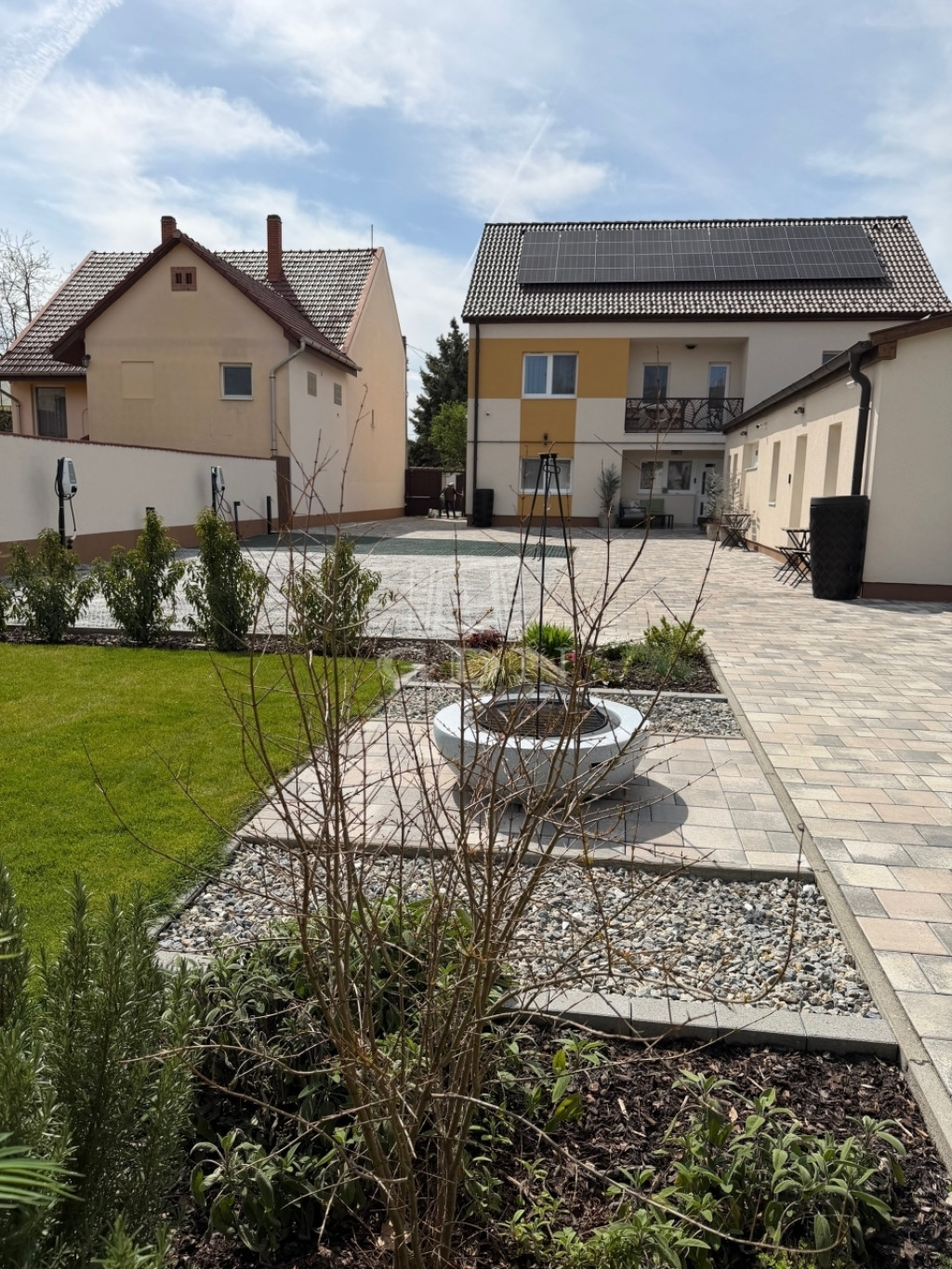 A parkolás 5 db udvari parkolóhelyen megoldott, és 2 darab elektromosautó-töltő is telepítésre került.