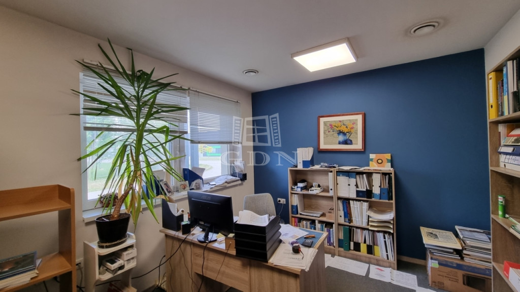 ‣ iroda, szoc. blokk és egyéb: 175m2 (5db irodahelyiség, teakonyha, étkező, női-férfi mosdó, zuhanyzós öltöző)